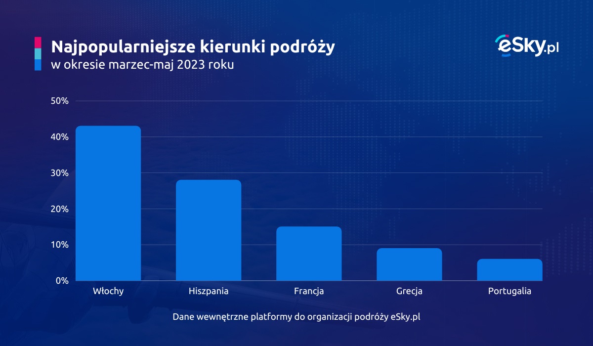 - W czołówce najpopularniejszych krajów znajdziemy absolutnego faworyta Polaków – Włochy, gdzie podróżnicy udadzą się do mniej popularnych miast, niż tylko stolica i Mediolan.
