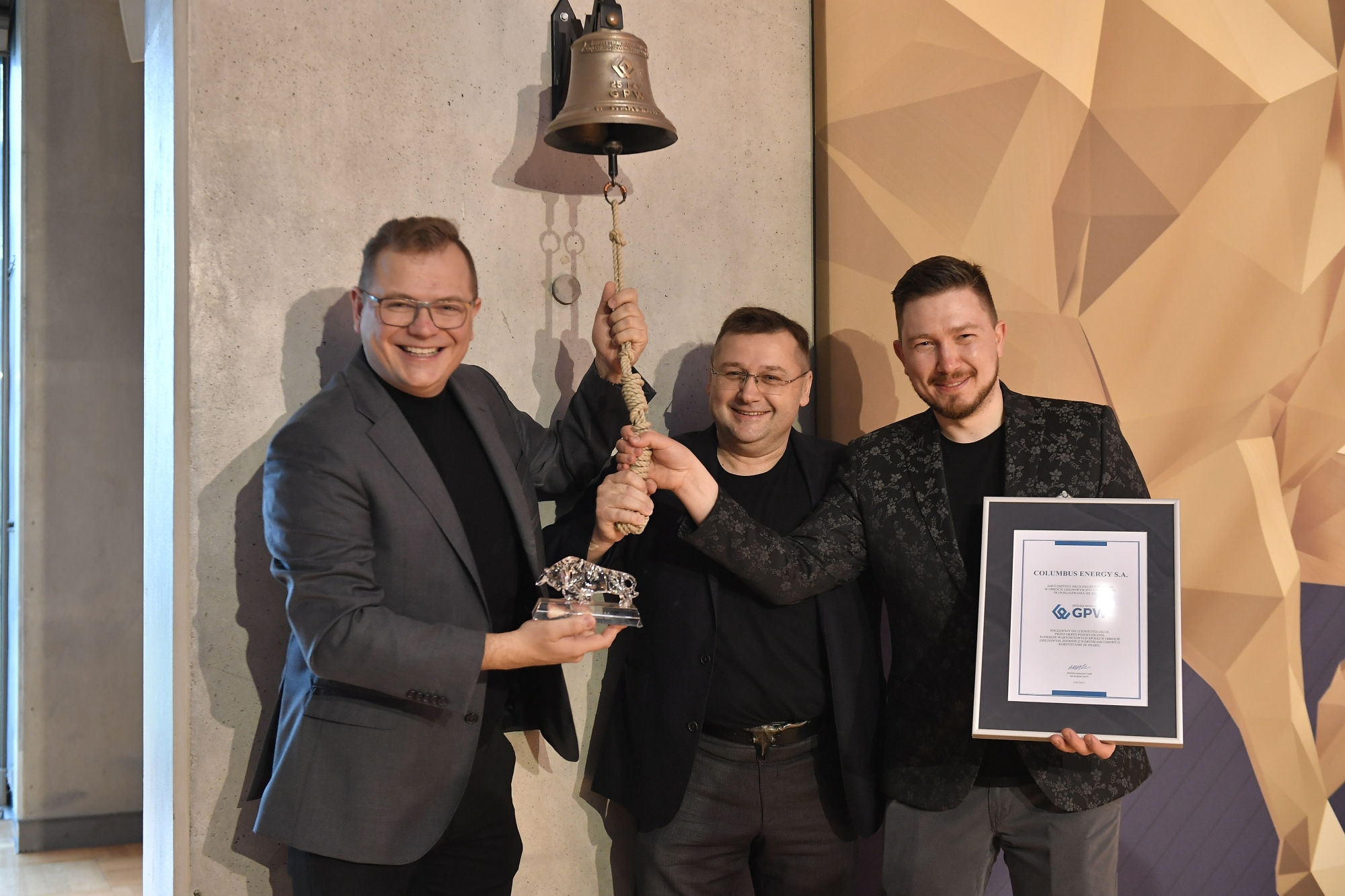 Na zakończenie wydarzenia prezes Columbus Energy S.A. wraz z pozostałymi członkami zarządu spółki otrzymali od Moniki Gorgoń dyplom GPW oraz statuetkę byka symbolizującego giełdową hossę.