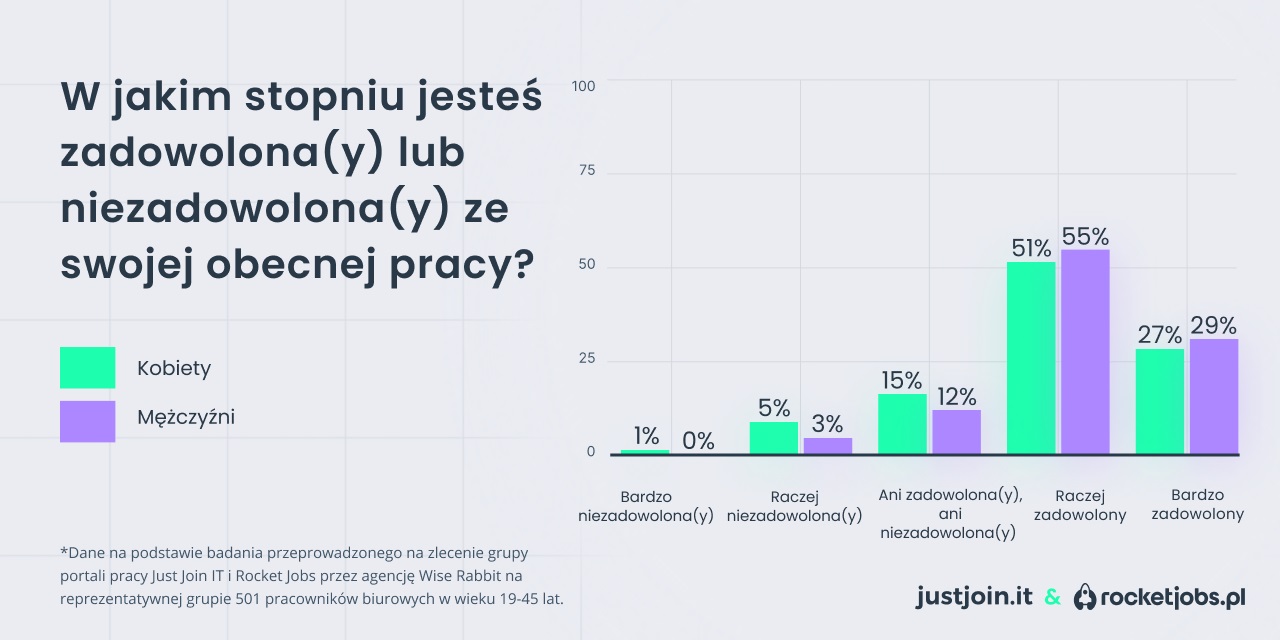 W badaniu przeprowadzonym na przełomie lutego i marca 2023 przez Wise Rabbit na zlecenie grupy portali pracy Just Join IT i Rocket Jobs, wzięło udział 501 osób w wieku 19-45 lat. Ankietowani reprezentowali branżę IT, finansową, handlową, inżynieryjną, HR, marketingową i kreatywną. Spośród badanych 40% to specjaliści, 26% managerowie, a 22% to kadra zarządzająca. Pozostałe 12% stanowiły osoby zatrudnione na stanowiskach asystenckich.