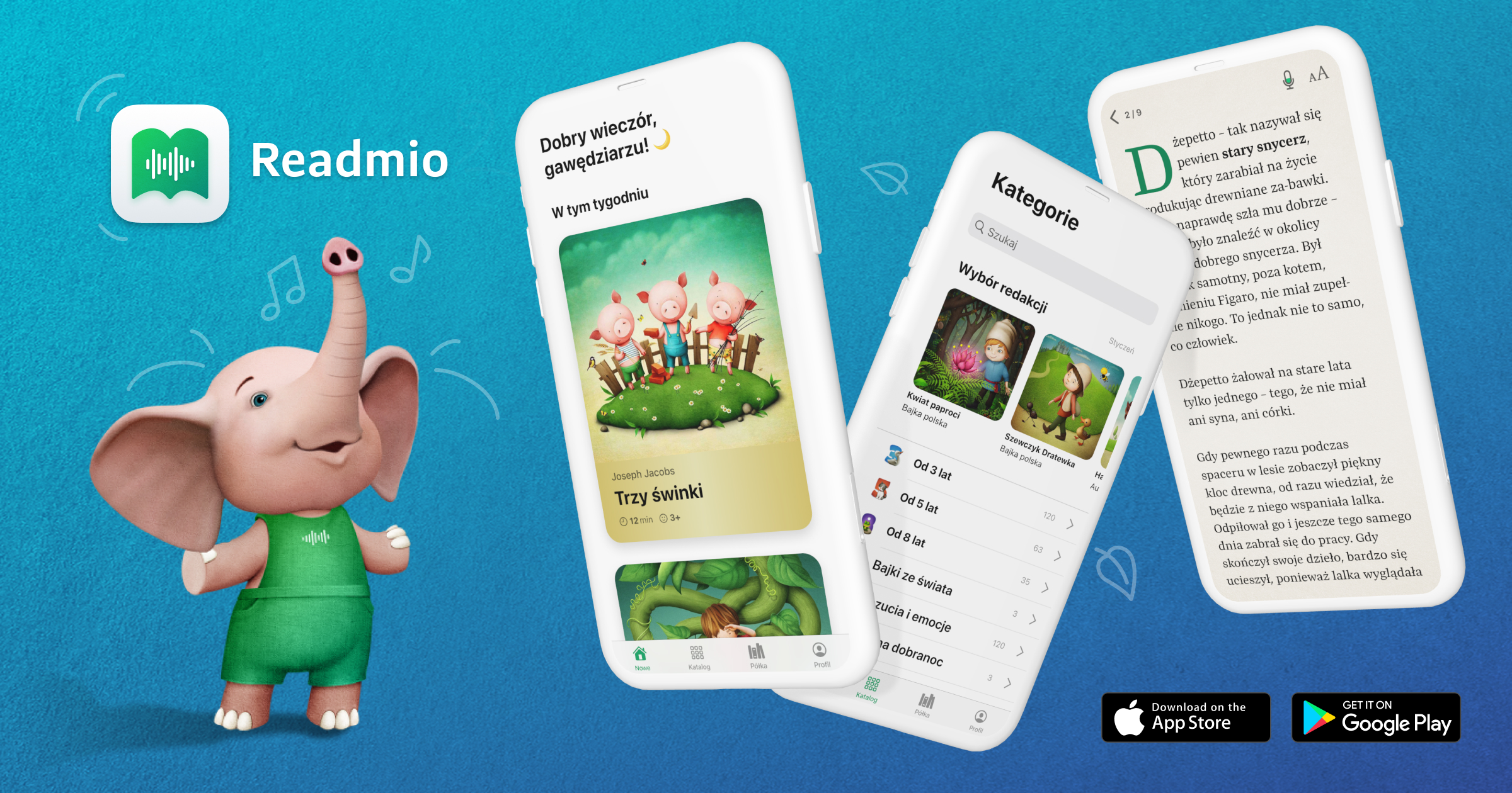 Twórcy Readmio po udanym debiucie aplikacji na Słowackim i Czeskim rynku, a także w Wielkiej Brytanii, zdecydowali się na ekspansję swojego rozwiązania do Polski. „Smok Wawelski”, „Szewczyk Dratewka” czy „Pan Twardowski”. To tylko niektóre z bajek dostępnych w Readmio. Oprócz klasycznych polskich bajek, w aplikacji znajdziemy również znane na całym świecie bajki, takie jak „Brzydkie kaczątko” czy „Kot w butach”, bajki ludowe, baśnie, bajki na dobranoc, opowieści edukacyjne oraz legendy z całego świata. Dodatkowo aplikacja przy każdej bajce służy podsumowaniem z morałami z niej płynącymi oraz ewentualnymi tematami do dyskusji z dzieckiem po lekturze.