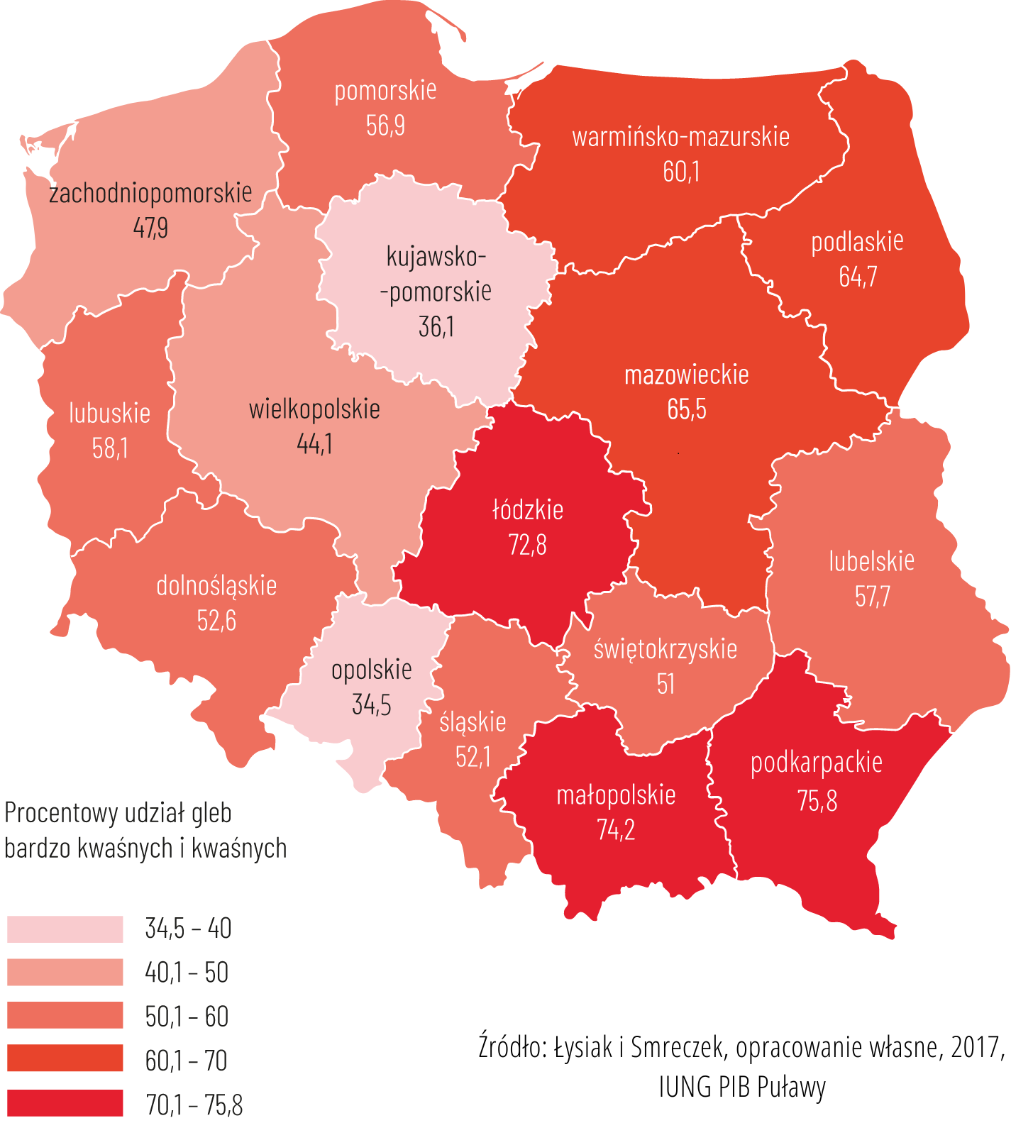 Według ekspertyzy opracowanej przez Instytut Uprawy Nawożenia i Gleboznawstwa ponad 60% polskich gleb jest zakwaszonych. Przekłada się to na mniejsze plony i konieczność intensywniejszego nawożenia nawozami wieloskładnikowymi. Żywność trafiająca na nasze stoły ma za to mniej składników odżywczych i jest droższa.