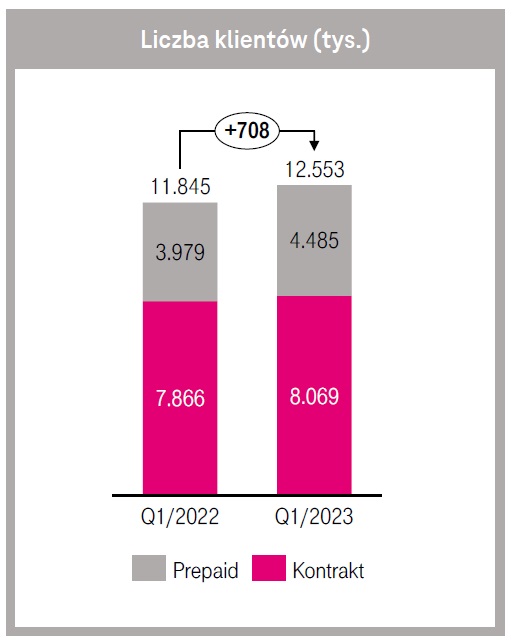 Na koniec pierwszego kwartału baza klientów T‑Mobile urosła o 708 tysięcy rok do roku, osiągając poziom 12,5 miliona. Wskaźnik rezygnacji (churn) w segmencie kontraktowym utrzymał się niskim poziomie 0,7%. Według raportu przenośności numerów Urzędu Komunikacji Elektronicznej T‑Mobile osiągnął w tym okresie drugi co do wielkości najlepszy rezultat wśród operatorów infrastrukturalnych, notując pozytywne saldo MNP na poziomie 13,9 tys. nowych użytkowników.