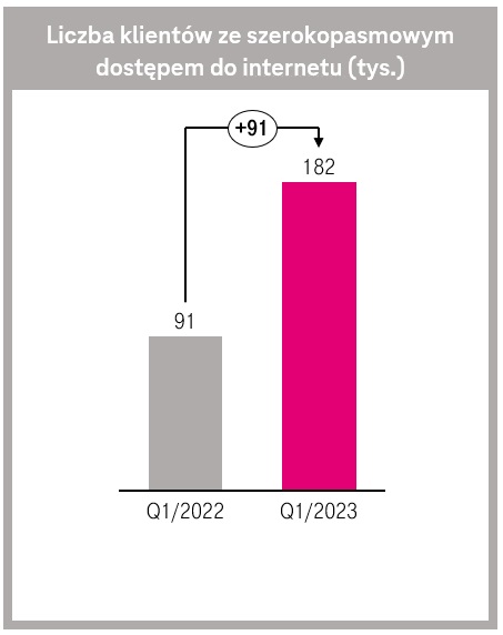 • zanotował wzrost liczby klientów korzystających z szerokopasmowego dostępu do internetu do poziomu 182 tys. (wzrost o 91 tys., podwojenie r/r),