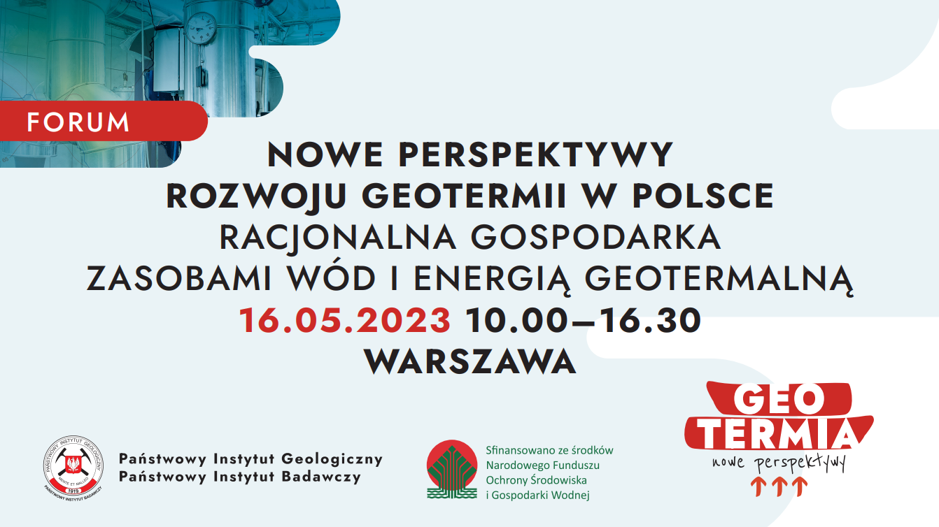 16 maja 2023 r. o godzinie 10:00 w Warszawie odbędzie się forum pt. „Nowe perspektywy rozwoju geotermii w Polsce. Racjonalna gospodarka zasobami wód i energią geotermalną”. Organizatorem konferencji jest Państwowy Instytut Geologiczny - Państwowy Instytut Badawczy, który wypełnia zadania państwowej służby geologicznej. Patronat Honorowy nad konferencją objęło Ministerstwo Klimatu i Środowiska oraz Narodowy Fundusz Ochrony Środowiska i Gospodarki Wodnej.