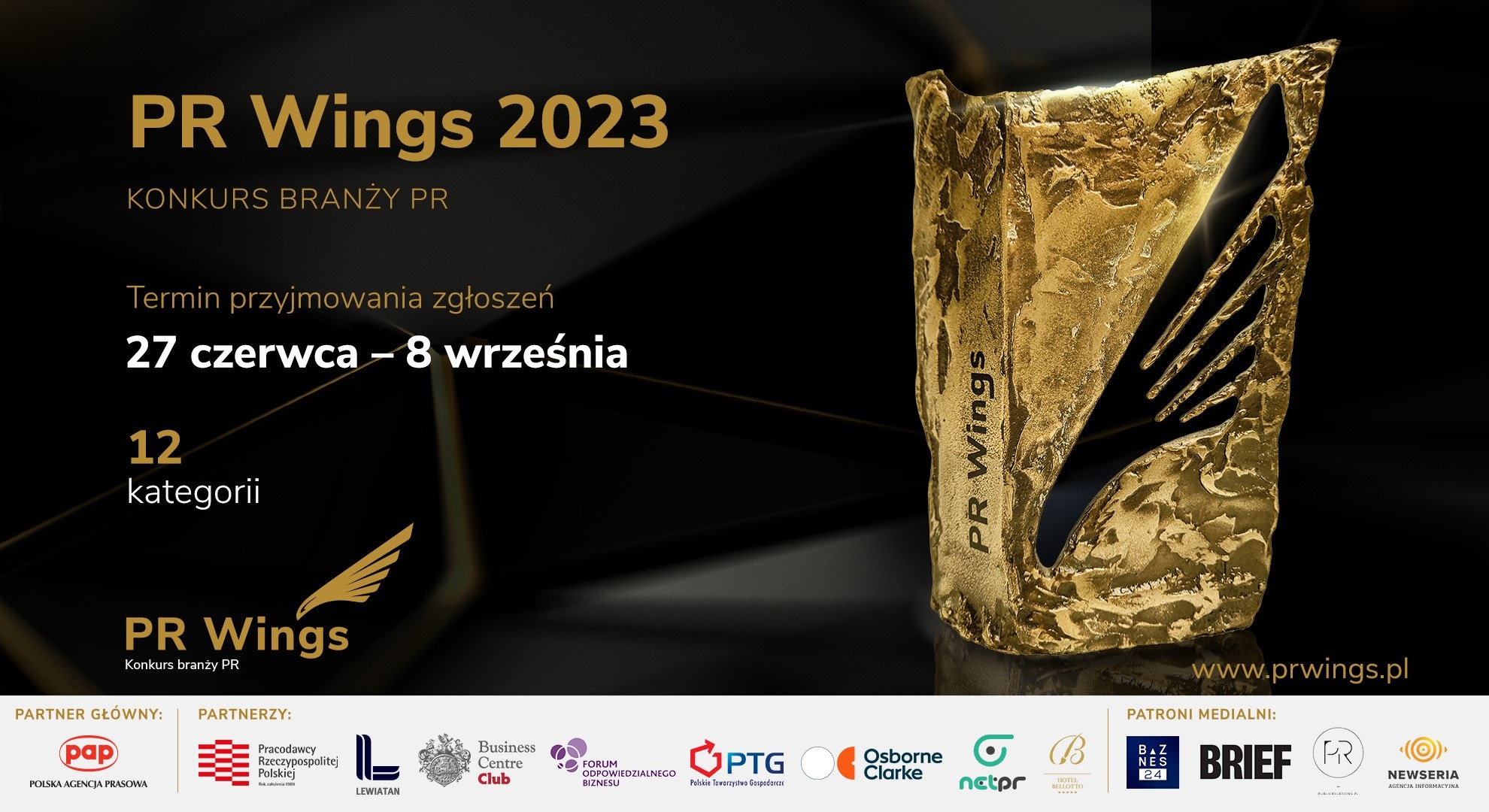 Od dziś do 8 września br. można przesyłać zgłoszenia do kolejnej edycji konkursu PR Wings, w którym co roku wyłaniane i nagradzane są najbardziej innowacyjne i pionierskie projekty oraz przedsięwzięcia z zakresu komunikacji i public relations. W konkursie, którego organizatorem jest Stowarzyszenie Agencji Public Relations (SAPR), wziąć udział mogą wszystkie podmioty komunikujące się publicznie w Polsce. PR Wings cechuje się otwartością na współczesne środowisko komunikacji oraz wysoką wiarygodnością procesu wyłaniania najlepszych projektów.