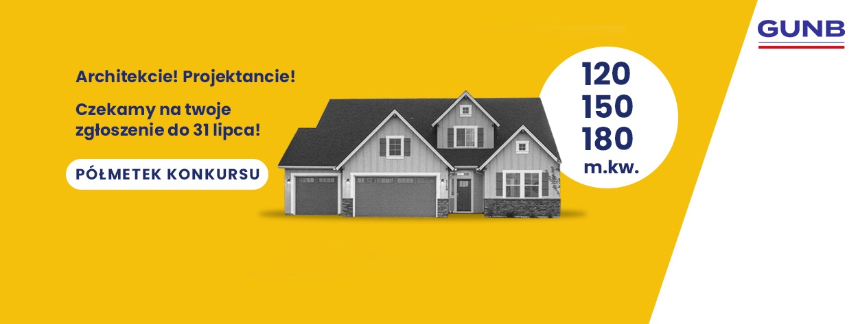 Już blisko półmetku konkursu architektonicznego GUNB na projekty domów o powierzchni zabudowy 120, 150 i 180 m2. Na stronie gunb.gov.pl, jeszcze w tym roku, pojawią się bezpłatne projekty do pobrania. Będą stanowić nie tylko inspirację, ale też istotne wsparcie dla przyszłych inwestorów. Na oferty z projektami organizatorzy czekają do 31.07.2023 r.