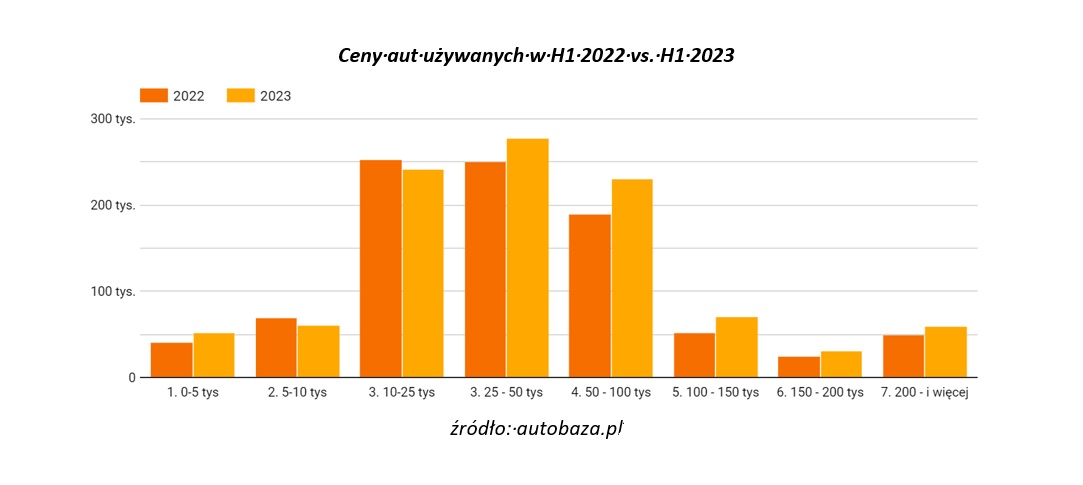 „Inflacja i idący za nią wzrost cen nie omija branży motoryzacyjnej, co wyraźnie widać w strukturze sprzedażowej na rynku samochodów używanych. Dodatkowo nadal odczuwamy skutki ograniczonej podaży aut – zarówno nowych, jak i tych z drugiej ręki, spowodowanej wydarzeniami ostatnich lat. Teraz, gdy liczba ogłoszeń znów zaczyna rosnąć, możemy spodziewać się delikatnych spadków cen, ale na duże obniżki raczej nie ma co liczyć” – komentuje Natalia Sokołowska, ekspertka autobaza.pl.