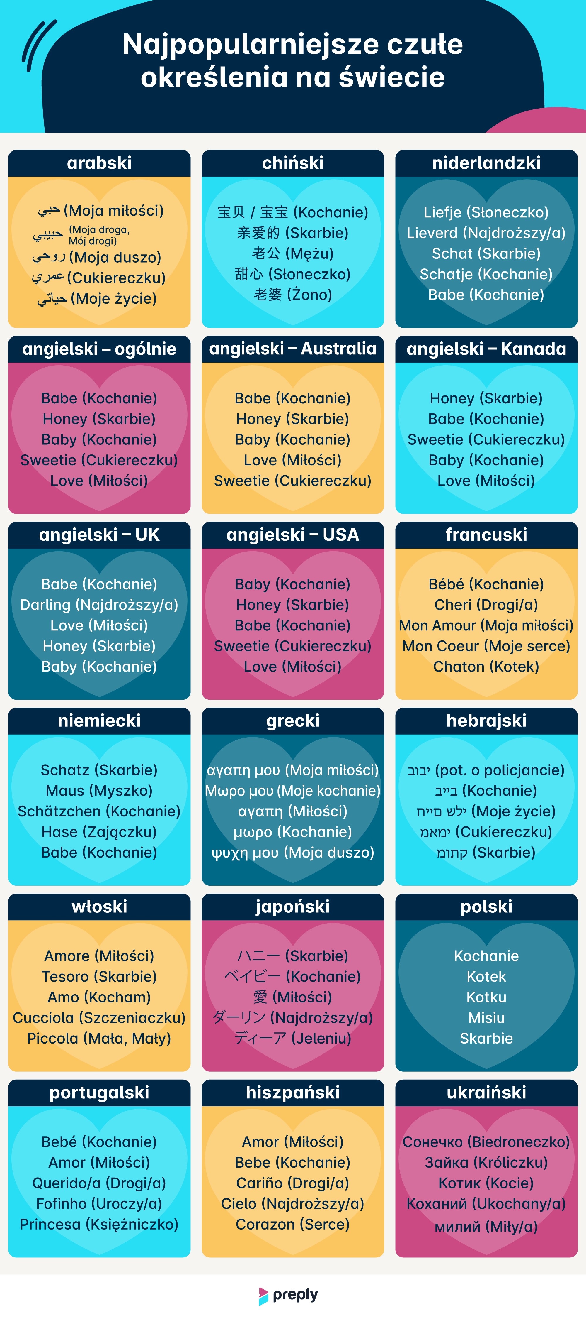 Pełna wersja raportu o pieszczotliwych przezwiskach w 14 różnych językach dostępna jest na blogu Preply.com.