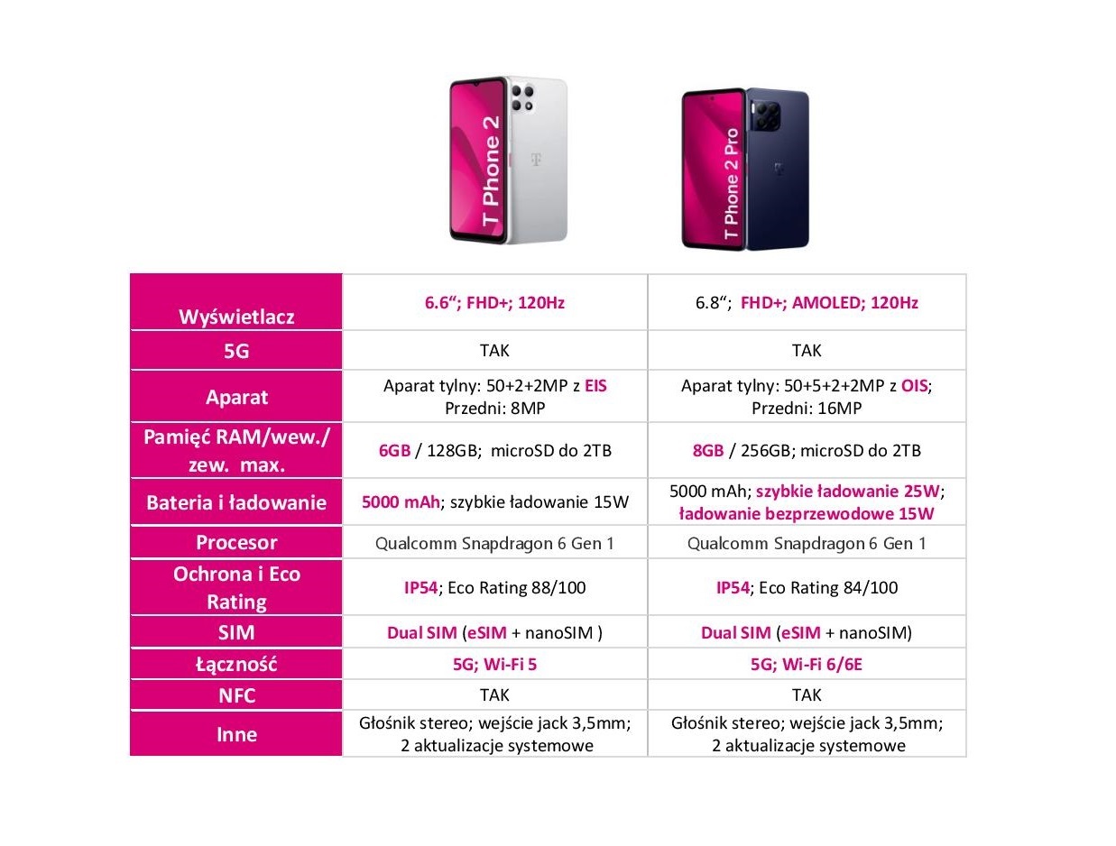 T Phone 2 5G dostępny będzie w cenie 999 zł, a T Phone 2 Pro 5G za 1499 zł. Dodatkowo, wraz ze smartfonami klient otrzyma komplet akcesoriów, wśród których znajdzie T-ładowarkę 33W, etui silikonowe, szkło ochronne, a do tego prezent: T-słuchawki TWE220. Nowe urządzenia zakupić będzie można zarówno w ofertach abonamentowych, jak i samodzielnie.