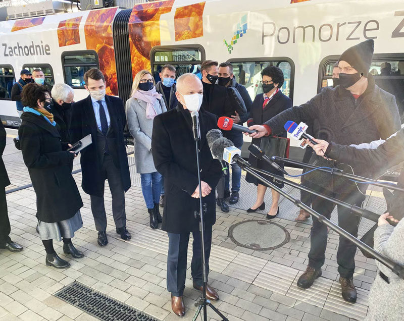 „Cieszę się ogromnie i jestem dumny z tego, że zarówno jako pierwsi wymieniliśmy tabor kolejowy na tabor nowoczesny i zmodernizowany oraz nadal jesteśmy jedynymi w Polsce, którzy mogą się tym pochwalić. Cieszę się, że podkreślono, że to będą pierwsze pojazdy, bo będą kolejne. Jestem ogromnie dumny, że te pociągi są produkcji polskiej, że zostały wyprodukowane w Nowym Sączu przez firmę NEWAG. Gratuluję panu prezesowi, że udało się ten projekt zrealizować” - powiedział Tomasz Sobieraj wicemarszałek woj. zachodniopomorskiego.
