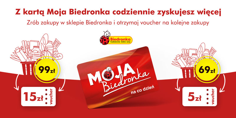 Teraz sieć chce jeszcze bardziej docenić swoich stałych klientów. Wszyscy ci, którzy posiadają kartę Moja Biedronka, od 1 lutego 2021 r. otrzymają voucher w wysokości 15 zł za każde zakupy powyżej 99 zł oraz voucher w wysokości 5 zł, kiedy wartość ich koszyka przekroczy 69 zł. Vouchery można wykorzystać w ciągu dwóch dni od momentu ich otrzymania ponawiając zakup na kwotę, która była podstawą otrzymania vouchera. Oferta obowiązuje od 1 do 28 lutego, a z promocji można skorzystać każdego dnia, maksymalnie raz dziennie. Co ważne, klienci mogą skorzystać z promocji każdego dnia, przez cały miesiąc. Promocja przygotowana przez sieć jest doskonałą okazja aby przystąpić do programu i zacząć oszczędzanie przy okazji codziennych zakupów w sieci sklepów Biedronka.