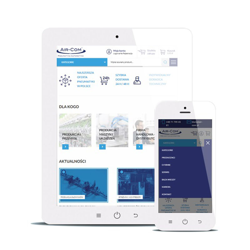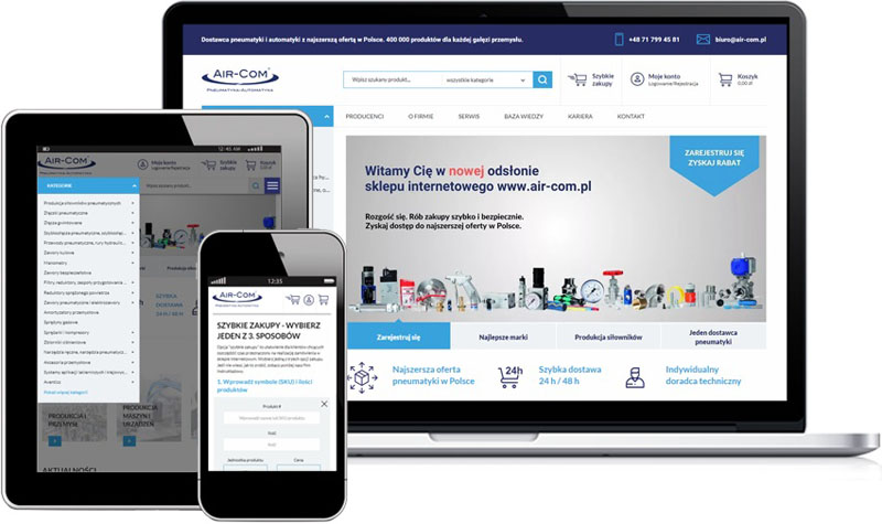 Sklep internetowy z pneumatyką www.air-com.pl zyskał nową odsłonę. Zmiany obejmowały budowę niemal “od zera” nowej platformy sprzedaży online. Głównymi jej wyróżnikami są między innymi nowy system zarządzania produktami, nowa szata graficzna, poprawiona użyteczność, oraz integracja z licznymi aplikacjami klasy ERP i narzędziami marketingowymi.
