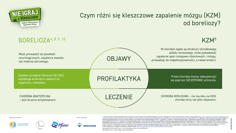 Mimo rosnącej liczby przypadków KZM u naszych sąsiadów, w Polsce w 2020 r. zaobserwowano jej spadek o 41 proc. w porównaniu z rokiem 2019[5]. Nie oznacza to jednak, że Polska jest obszarem wolnym od KZM, wręcz przeciwnie. Jak sygnalizują eksperci, w Polsce wciąż wyzwaniem pozostaje niedoszacowanie skali problemu, jaki stanowi KZM. Powodów tej sytuacji jest wiele, m.in. ograniczenie dostępności oraz brak finansowania testów umożliwiających ustalenie czynnika etiologicznego przy diagnostyce wirusowych zapaleń układu nerwowego. Dla większości zgłoszonych przypadków wirusowych infekcji układu nerwowego nie określa się jaki wirus wywołał chorobę. Istnieje więc potrzeba wdrożenia zmian, w tym poprawy dostępu do diagnostyki KZM czy większej edukacji nt. choroby i jej profilaktyki (także za pomocą szczepień). Jak pokazują statystyki naszych sąsiadów – KZM jest wciąż rosnącym zagrożeniem.
