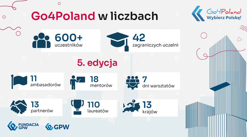 „Podczas tegorocznej edycji otworzyliśmy się również na Polonię, studentów uczestniczących w Programie Stypendialnym im. Generała Władysława Andersa. W naszych działaniach przewidzieliśmy dodatkową pulę miejsc dla studentów mających polskie korzenie, korzystających z tego programu w ramach Narodowej Agencji Wymiany Akademickiej” - dodaje Eliza Czapska, koordynatorka Programu „Go4Poland - Wybierz Polskę” w Fundacji GPW.