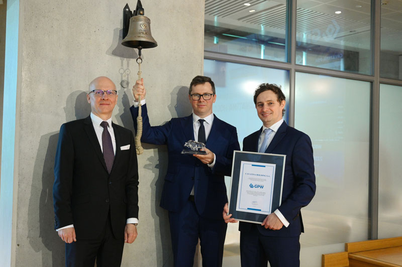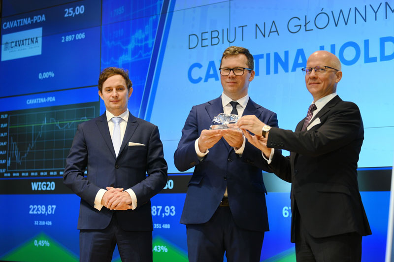 „Dzisiaj na naszym Głównym Rynku zadebiutowała spółka Cavatina Holding. To największy polski developer nieruchomości biurowych. Firma z sukcesem przeprowadziła nową emisję akcji i pozyskała 187 milionów złotych” - mówi Piotr Borowski, członek zarządu Giełdy Papierów Wartościowych w Warszawie ds. operacyjnych i regulacyjnych.