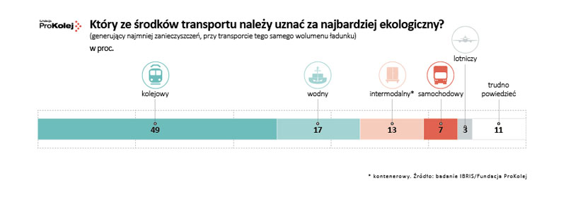 Kolej to najbardziej ekologiczny środek transportu – tego zdania jest co drugi ankietowany przez IBRIS przedsiębiorca. Co więcej, transport kolejowy szybciej od drogowego ma szansę na osiągnięcie neutralności klimatycznej – z tym stwierdzeniem zgadza się aż 78 proc. respondentów.