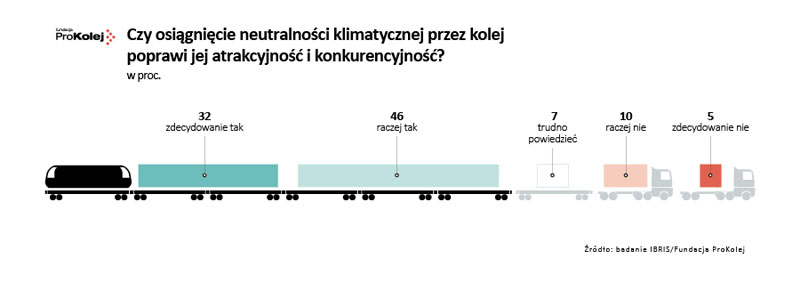Zainteresowanie kolejowych przewozami opartymi o odnawialne źródła energii rośnie zarówno w sektorze przewozów pasażerskich, jak i towarowych. Osiem na dziesięć ankietowanych przez IBRIS firm potwierdza, że osiągnięcie neutralności klimatycznej znacznie podniesie atrakcyjność oraz konkurencyjność kolei.