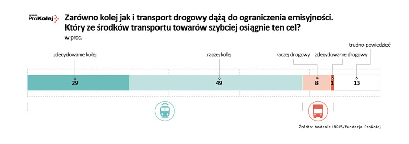 „Jeden pociąg towarowy może zastąpić 80 do 100 ciężarówek. W rezultacie kolej emituje 3 razy mniej dwutlenku węgla, niż transport drogowy i ponad 8 razy mniej niż lotnictwo” – potwierdza dr Jakub Majewski, adiunkt na Uniwersytecie Warszawskim i prezes Fundacji ProKolej.