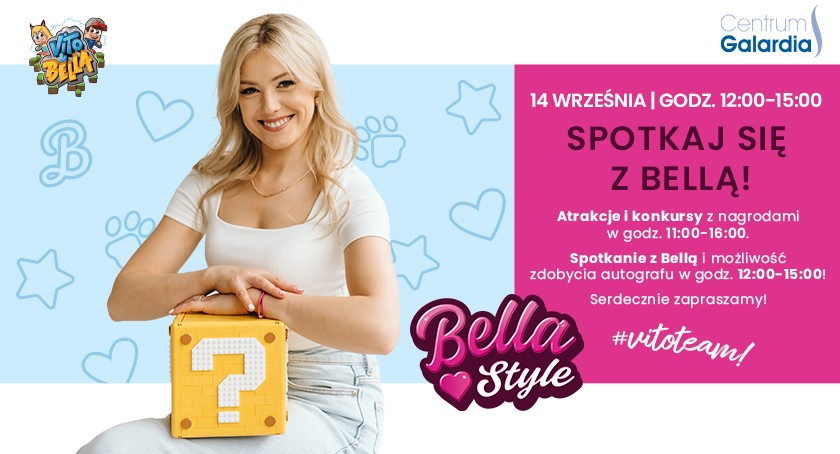 Z okazji nowego roku szkolnego Galardia organizuje wydarzenie, które będzie nie lada atrakcją, zwłaszcza dla wszystkich młodych widzów serwisu YouTube. W sobotę 14 września do centrum handlowego przyjedzie Bella. Pseudonim ten znają miliony dzieci w Polsce. To jedna z topowych youtuberek, znana również z duetu Vito i Bella. Jej kanał na YouTube, na którym publikuje treści związane z grami wideo, bije rekordy popularności.