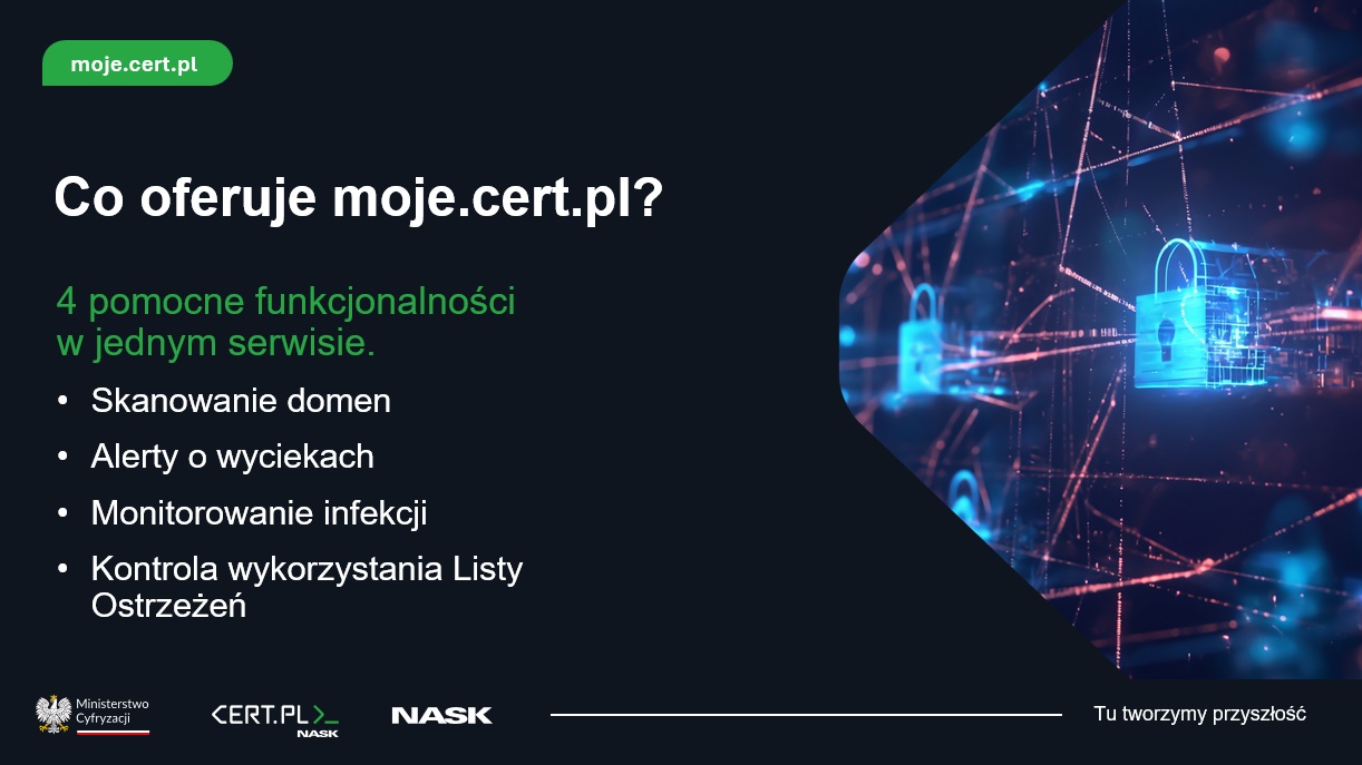 Każdy – zarówno osoba prywatna, mała firma, jak i duża instytucja publiczna – może sprawdzić, czy jego strona internetowa jest bezpieczna. To wszystko dzięki bezpłatnemu narzędziu moje.cert.pl, przygotowanemu przez zespół CERT Polska, działający w Państwowym Instytucie Badawczym NASK. Serwis umożliwia skanowanie domen pod kątem zagrożeń, wysyła alerty o wyciekach danych oraz ostrzega przed potencjalnie niebezpiecznymi stronami. Korzystanie z niego wzmocni cyberbezpieczeństwo firm i instytucji.