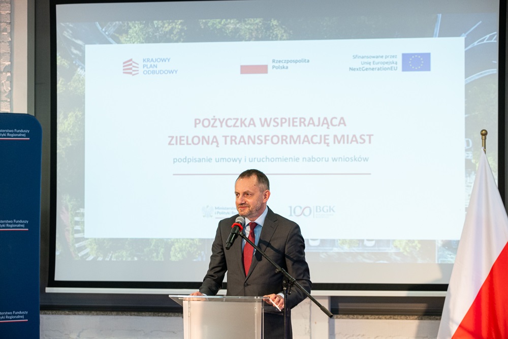 Przedstawiciele Banku Gospodarstwa Krajowego (BGK) i Ministerstwa Funduszy i Polityki Regionalnej (MFiPR) piątego kwietnia podpisali umowę na wdrażanie Pożyczki wspierającej zieloną transformację miast. Samorządy będą mogły przeznaczyć te środki m.in. na inwestycje w tereny zielone, termomodernizację i odnawialne źródła energii (OZE). Budżet projektu to 40 mld zł.