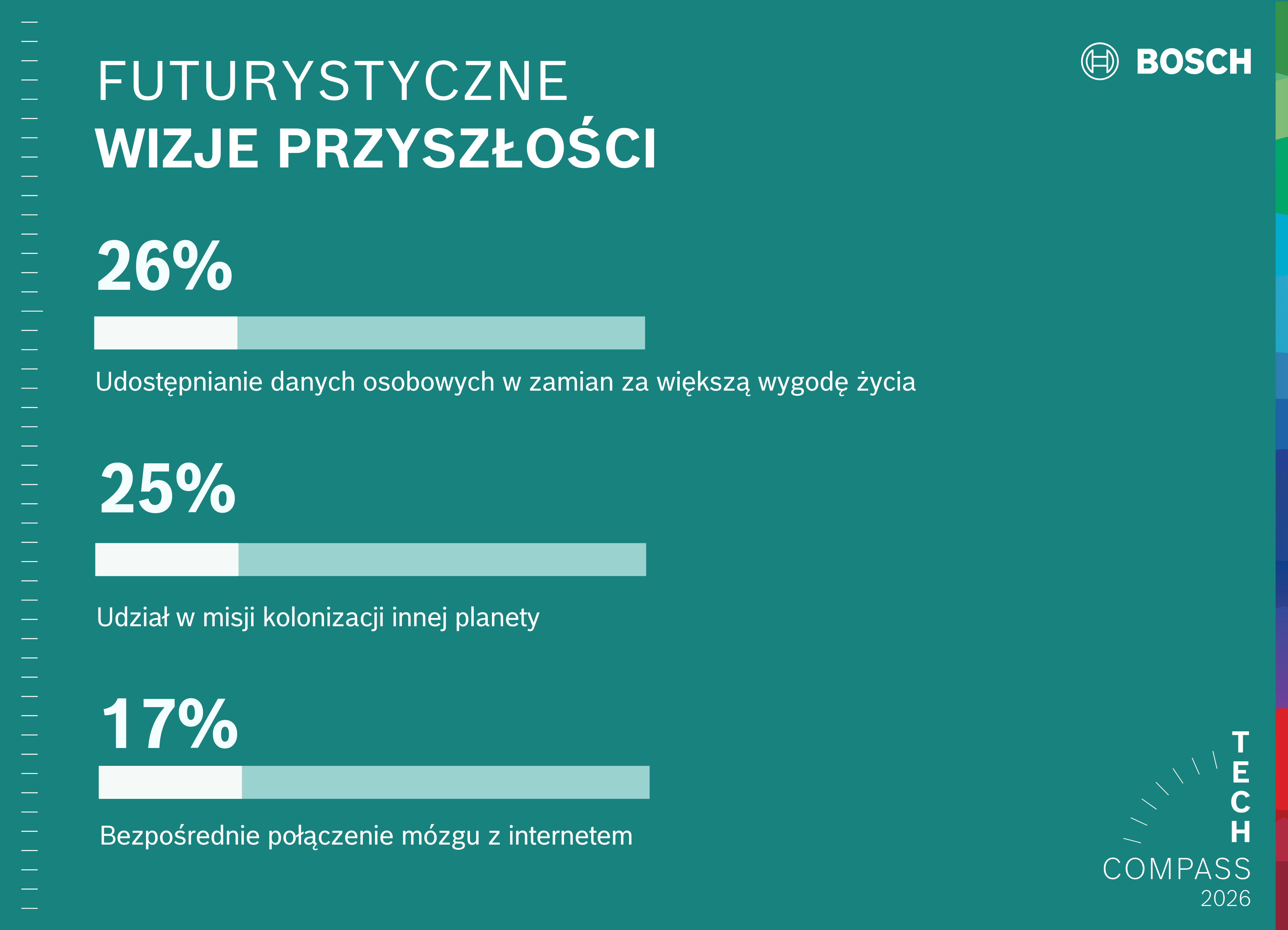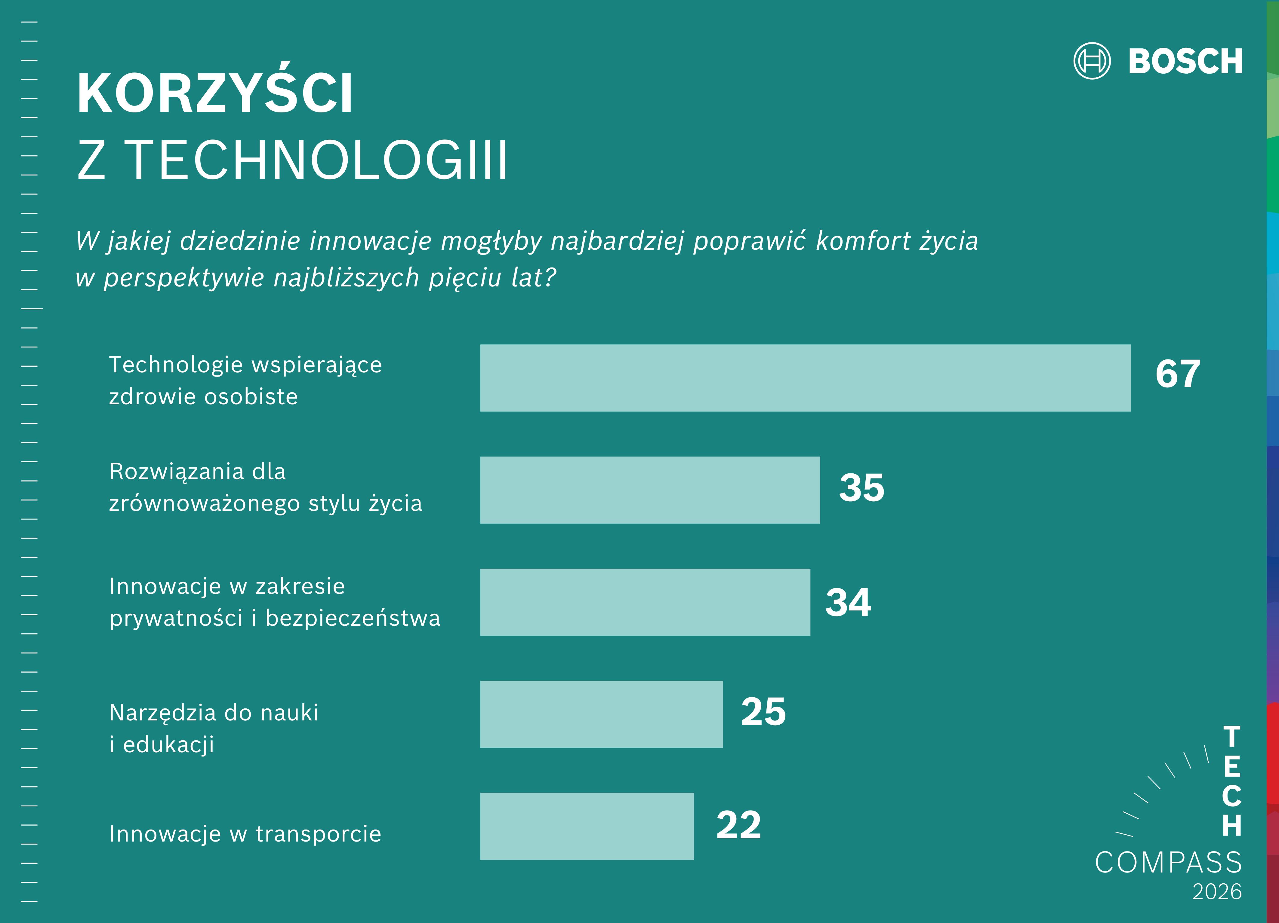 - Badanie Bosch Tech Compass 2026 potwierdza pozytywne nastawienie respondentów z Polski do rozwoju technologicznego.