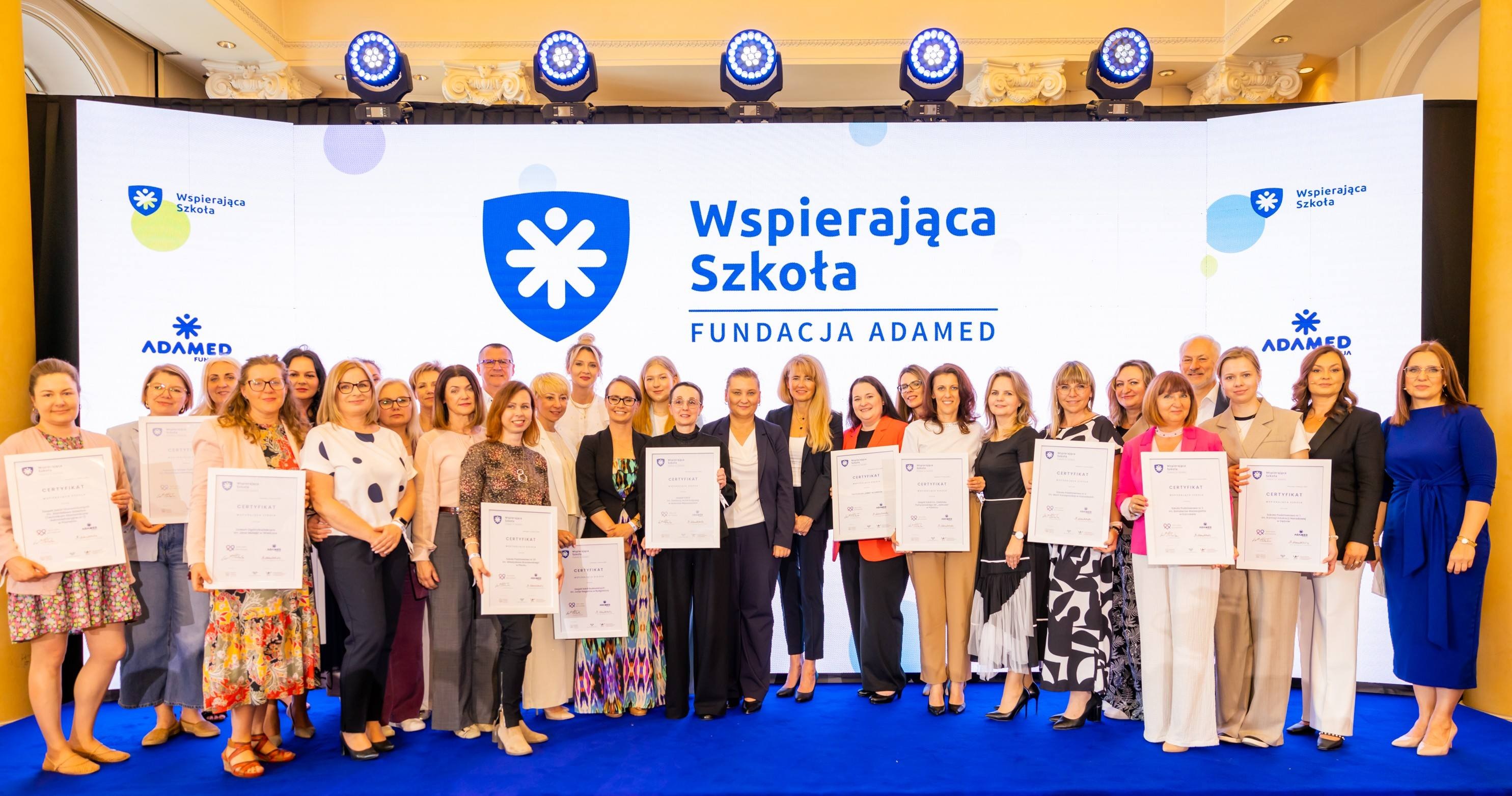 13 czerwca br. w Warszawie odbyła się uroczysta gala podsumowująca I edycję programu Wspierająca Szkoła, prowadzonego pod patronatem Ministerstwa Edukacji Narodowej przez Fundację Adamed i serwis Życie Warte Jest Rozmowy. W ciągu 7 miesięcy program dotarł do niemal 740 pracowników szkół oraz 1200 rodziców i opiekunów. Uczestnicy przeznaczyli łącznie 520 godzin dydaktycznych na pogłębianie wiedzy z zakresu postępowania w przypadku wystąpienia kryzysu psychicznego u młodych osób. Certyfikaty potwierdzające udział w programie, z rąk podsekretarz stanu w Ministerstwie Edukacji Narodowej oraz organizatorów inicjatywy, odebrało grono pedagogiczne 26 placówek edukacyjnych z całej Polski.