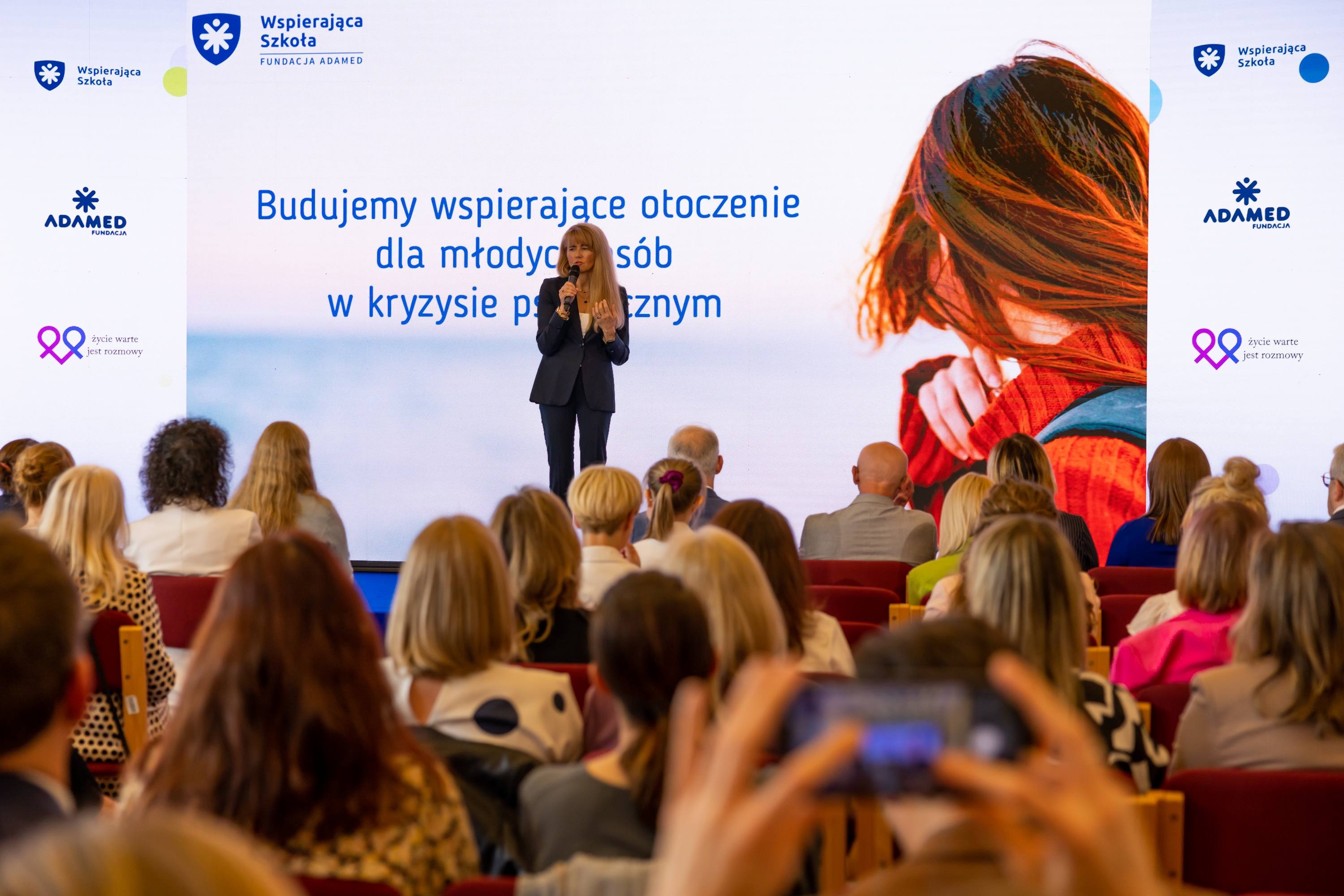 „W dzisiejszym wyjątkowo niestabilnym świecie, w którym zdewaluowały się wartości, coraz trudniej znaleźć prawdziwe autorytety. Młodzi ludzie, zamiast wsparcia, często doświadczają presji i zagubienia. Nowoczesne technologie, które miały być narzędziem rozwoju, zbyt często stają się źródłem lęku, samotności i problemów psychicznych. Dla mnie jako lekarza nie ma nic cenniejszego niż ludzkie życie i zdrowie. Dla rodzica nie istnieje większa tragedia niż śmierć dziecka - mówiła podczas wydarzenia dr n. med. Małgorzata Adamkiewicz, prezes zarządu Fundacji Adamed.- Dlatego to właśnie my, dorośli, ponosimy odpowiedzialność za stworzenie bezpiecznego, wspierającego środowiska, w którym młode pokolenie będzie mogło rozwijać się, uczyć i budować swoją przyszłość. Na tym fundamencie opiera się idea programu Wspierająca Szkoła. My w Fundacji Adamed wierzymy, że możemy - i musimy - robić więcej. Dlatego nieustannie rozwijamy nasze działania, by wspierać tych, którzy najbardziej tego potrzebują. Bo przyszłość zaczyna się tutaj, dziś - w sercach i umysłach młodych ludzi”.