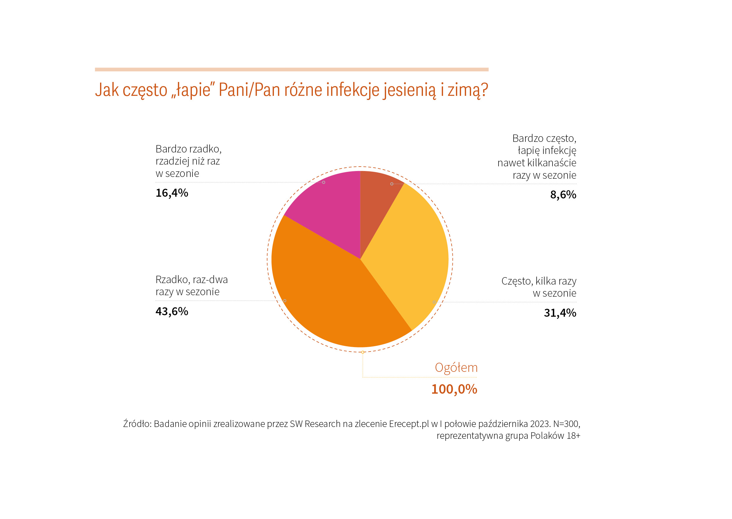 [1] Badanie opinii SW Research na zlecenie Erecept.pl, dotyczące sezonu infekcyjnego, przeprowadzono metodą CAWI w I połowie października 2023. N=300.