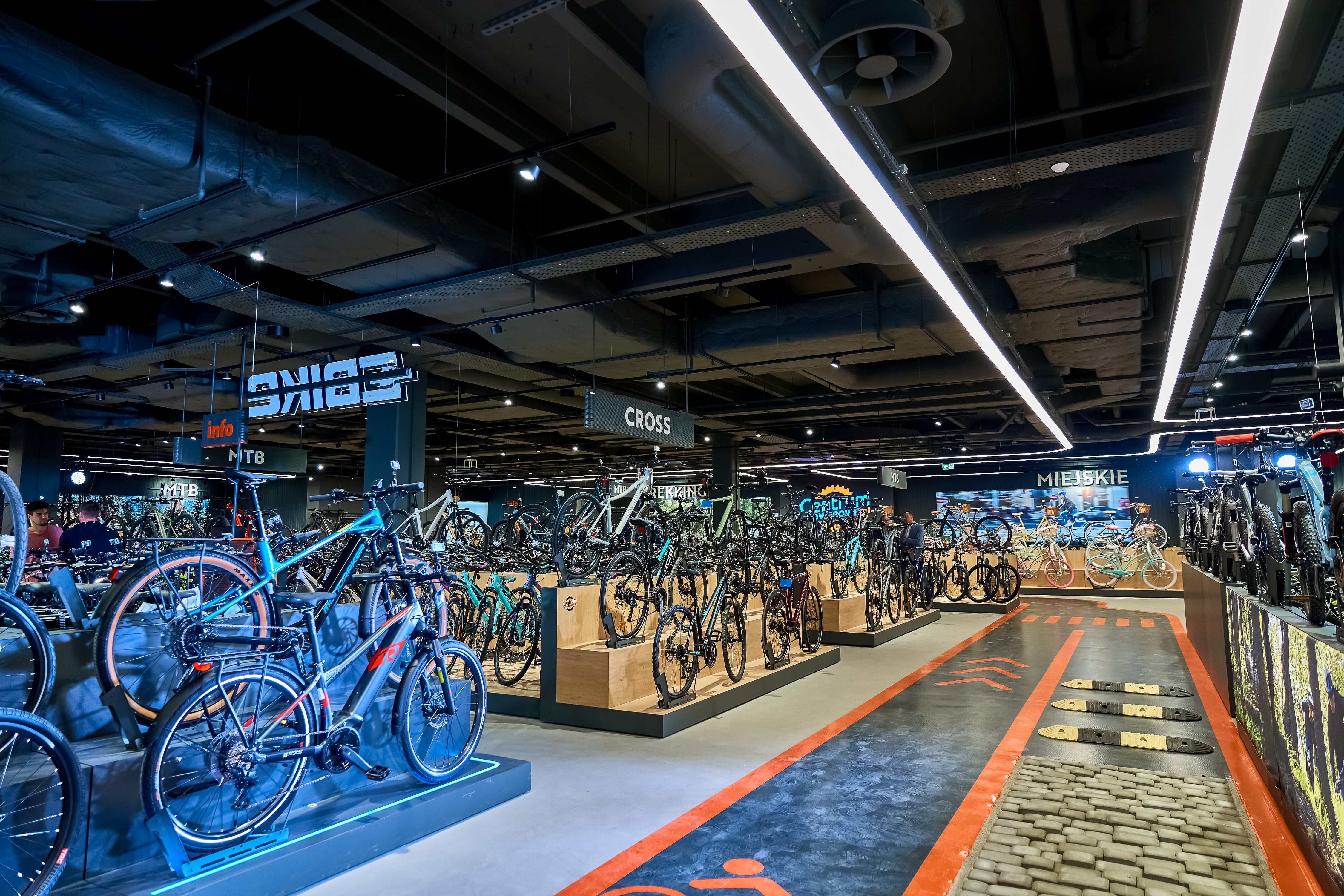 Na tym obszarze wszyscy amatorzy jazdy na rowerze będą mogli znaleźć, poza obszerną ofertą produktową, ścieżkę rowerową do testowania wszystkich typów rowerów, profesjonalny serwis rowerowy, strefę Click&Collect, a nawet wygodną strefę relaksu dla dorosłych i dzieci. Całość, podobnie jak w warszawskim salonie znajdującym się w CH Okęcie Park, przy Al. Krakowskiej w Warszawie, opracowana została ze szczególnym nastawieniem na consumer experience.
