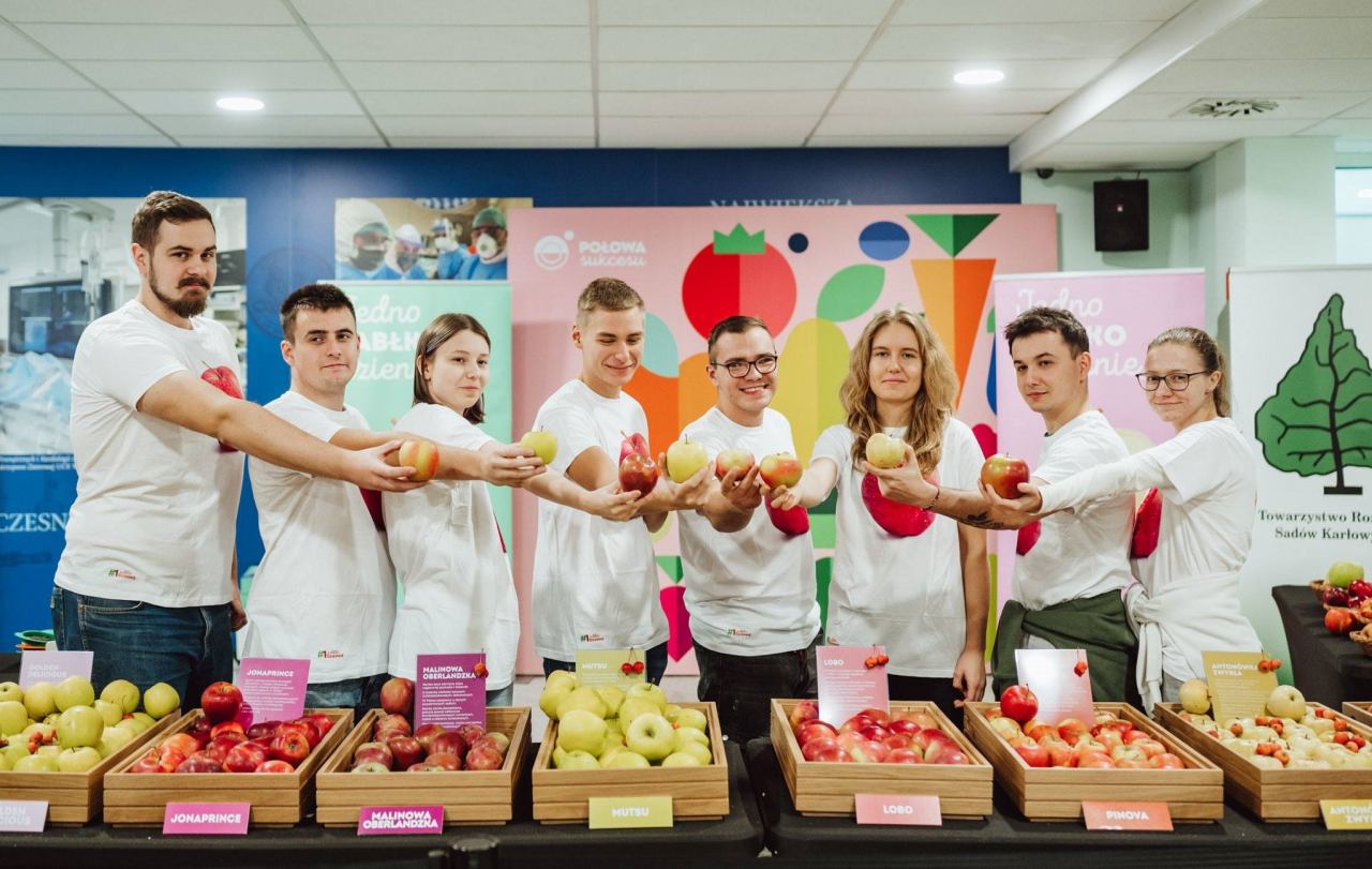 Studenci i uczestnicy udanej próby ustanowienia rekordu degustowali jabłka odmian: Szampion, Golden Delicious, Gala, Jonaprince, Pinova, Ligol, Lobo, Mutsu, Antonówka Zwykła i Malinowa Oberlandzka.