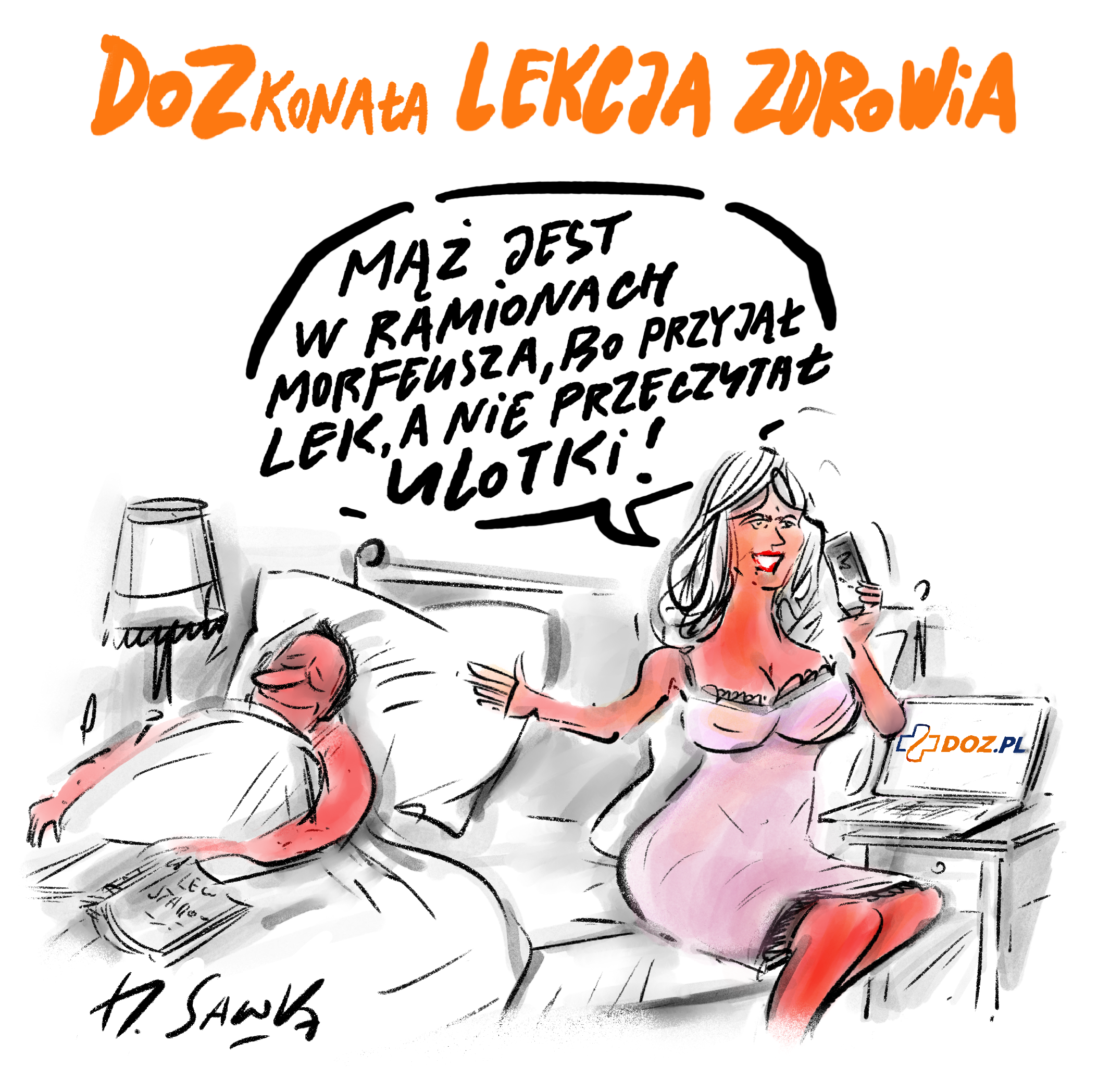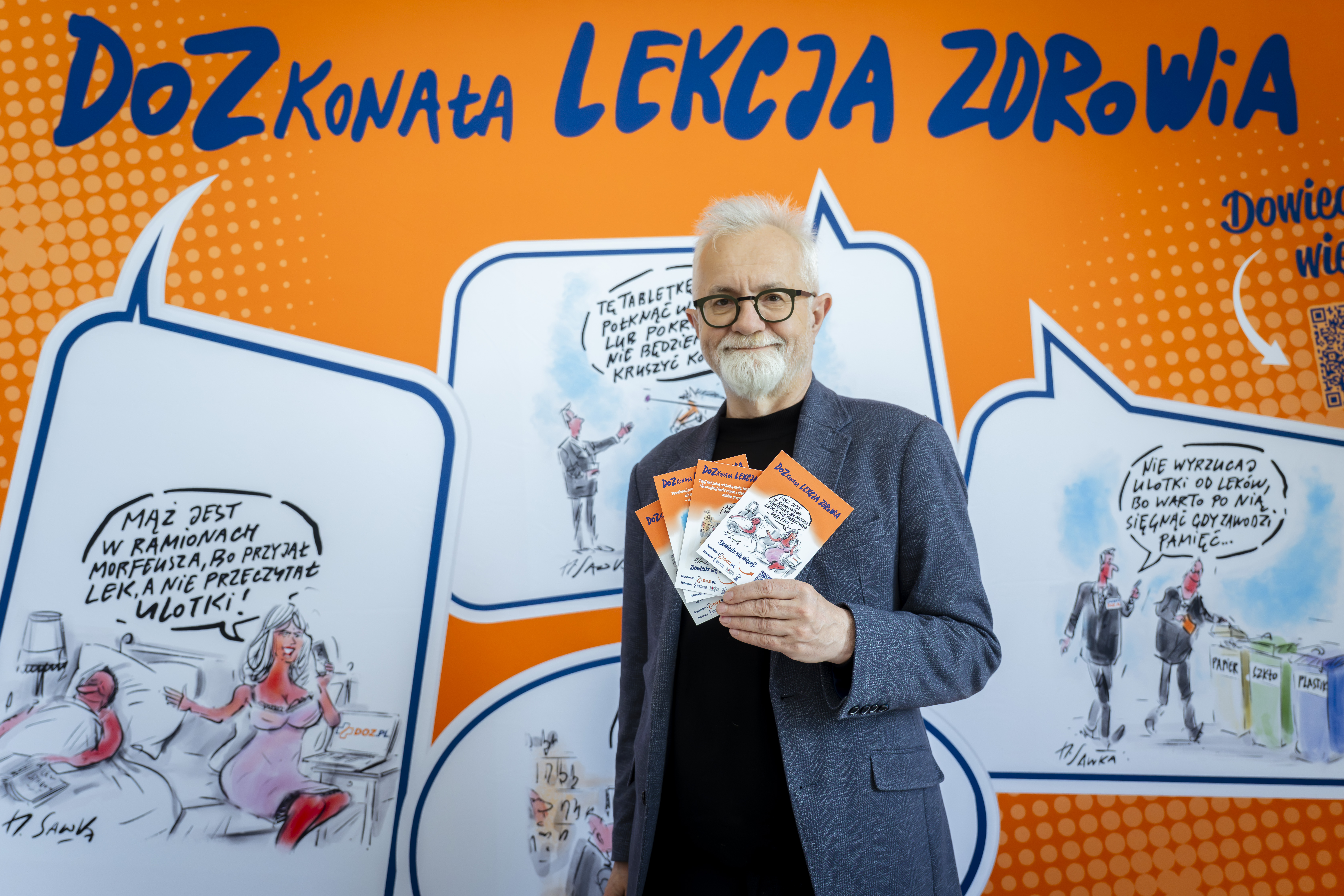 Aby lepiej wyjaśniać, jak prawidłowo stosować leki, do współpracy zaproszony został znany satyryk Henryk Sawka. Jego humorystyczne ilustracje pokazują najczęstsze błędy i zagrożenia związane z przyjmowaniem leków - dzięki temu przekaz staje się łatwiejszy do przyswojenia i bardziej angażujący.