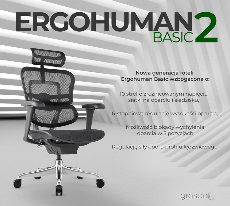 Ergohuman 2 to seria foteli biurowych dostępna w trzech wersjach - Basic, Elite i Elite Pro. Każda z nich posiada niezwykle zaawansowane funkcje. Opcja regulacji wysokości siedziska, to już standard - fotel biurowy Ergohuman 2 posiada znacznie więcej. Między innymi mechanizm synchroniczny, który dostosowuje się do ruchów ciała zapewniając maksymalną wygodę, a możliwość blokady siedziska w dogodnej pozycji zagwarantuje stabilność podczas wykonywania ważnych czynności.