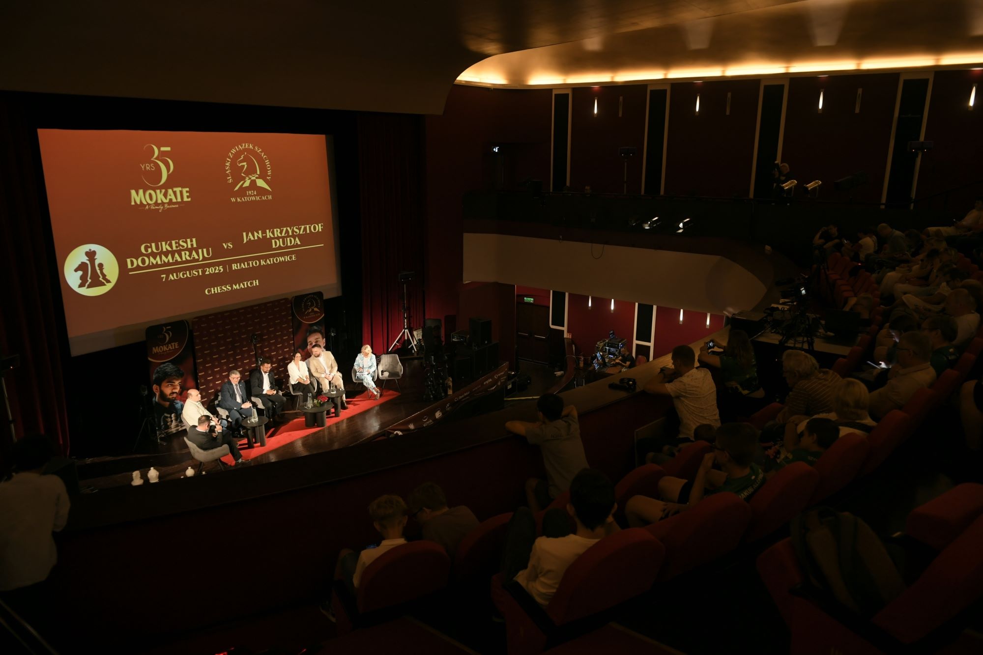 Jan Krzysztof Duda - najlepszy polski szachista - zmierzył się w Katowicach z obecnym mistrzem świata Dommaraju Gukeshem, wygrywając 5:1. Towarzyski mecz w dynamicznej formule szachów błyskawicznych odbył się 7 sierpnia w katowickim Kinoteatrze Rialto, w ramach wydarzeń towarzyszących VI Festiwalowi Szachowemu w Ustroniu.