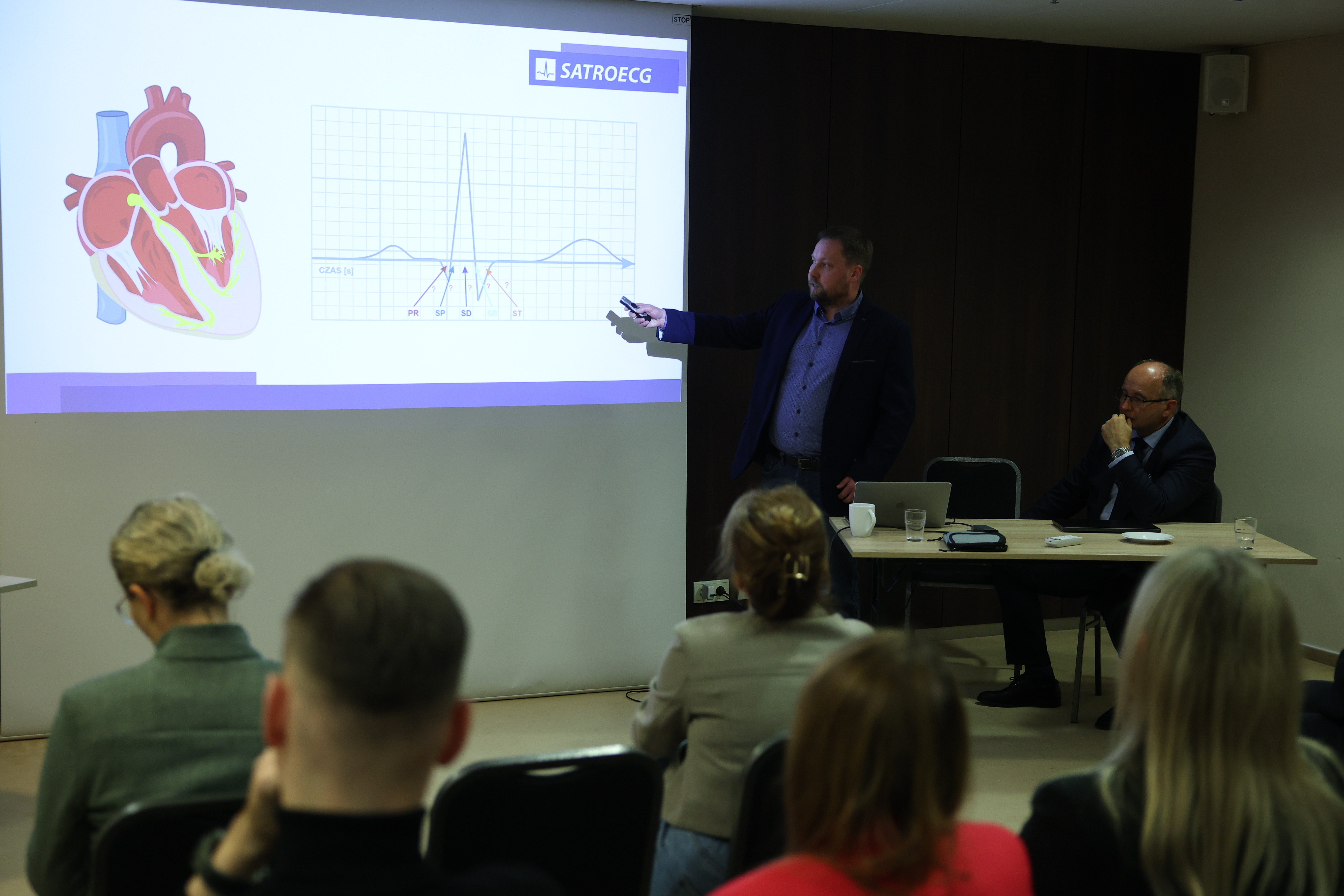 Łukasz Janicki, członek zarządu SATROECG S.A. informuje, że w ramach projektu powstaje aplikacja, która ma wspierać lekarzy w prowadzeniu i monitorowaniu pacjentów, umożliwiając oszacowanie ryzyka ponownego wystąpienia incydentu kardiologicznego. Pacjenci objęci opieką z wykorzystaniem oprogramowania będą przesyłali lekarzowi badania EKG wykonywane za pomocą urządzenia domowego oraz informacje pochodzące od lekarza prowadzącego, np. wyniki badań, czynniki ryzyka.