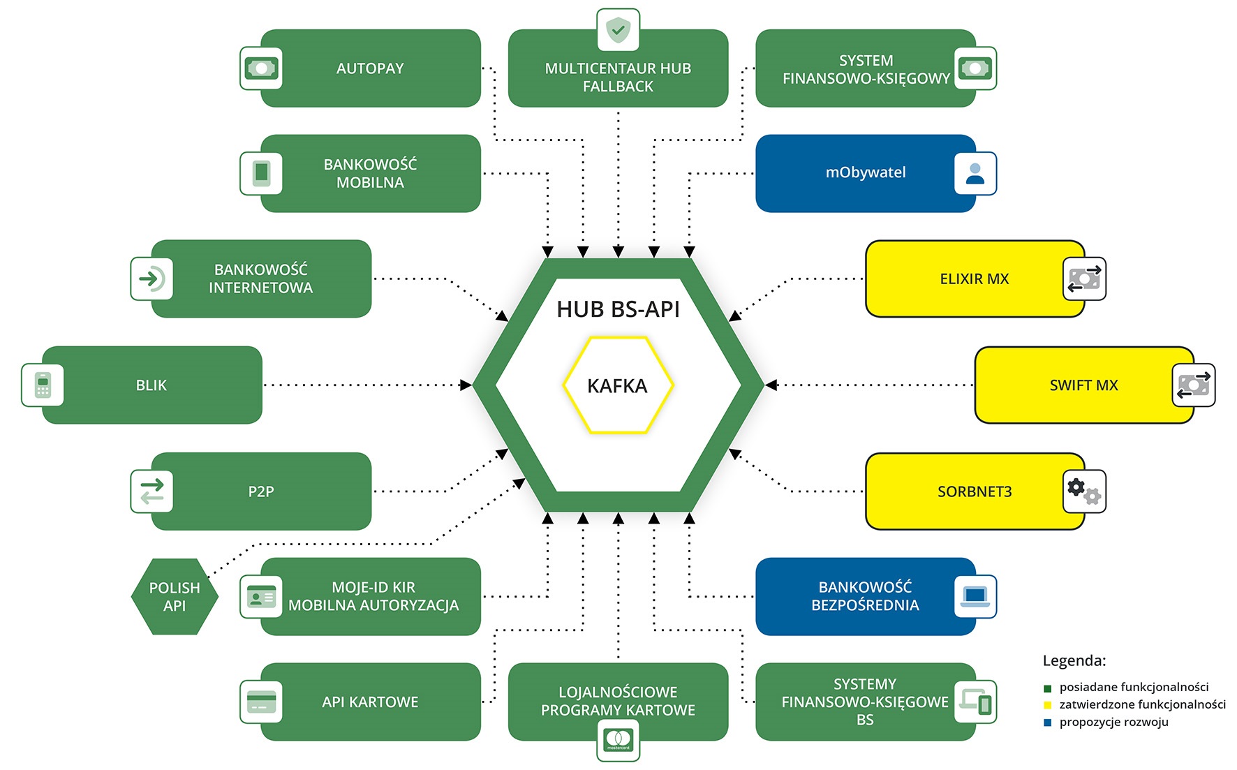MULTICENTAUR PAYMENT HUB (w SGB-Bank S. A. od 2006 roku, BPS S. A. od 2017 roku) - system zapewnia obsługę transakcji bankowych. Integruje systemy otoczenia bankowego i systemy wewnętrzne banku, tworząc dedykowane miejsce gromadzenia i przetwarzania transakcji bankowych. Wymienia informacje i pośredniczy w komunikacji z otoczeniem banku i jego klientami. System zapewnia obsługę mechanizmów wykorzystywanych w wysyłanych i otrzymywanych operacjach krajowych i zagranicznych SWIFT, ELIXIR, TARGET2, EURO ELIXIR - SEPA, STEP2, SORBNET2, EXPRESS ELIXIR, Western Union/Money Gram oraz BLIK. Obsługuje wymianę międzysystemową.