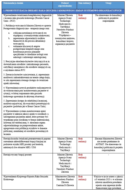 Federacja Przedsiębiorców Polskich opublikowała kolejną edycję „Monitora stanu systemu opieki nad pacjentami z rakiem gruczołu krokowego” – narzędzia służącego do analizy postępów zmian w systemie profilaktyki, diagnostyki oraz leczenia nowotworu gruczołu krokowego w Polsce. W porównaniu do ubiegłorocznej publikacji stan realizacji poszczególnych rekomendacji działań nie uległ znaczącym zmianom. Nie oznacza to jednak, że w odniesieniu do zmian systemowych w obszarze raka gruczołu krokowego mamy do czynienia z całkowitą stagnacją.