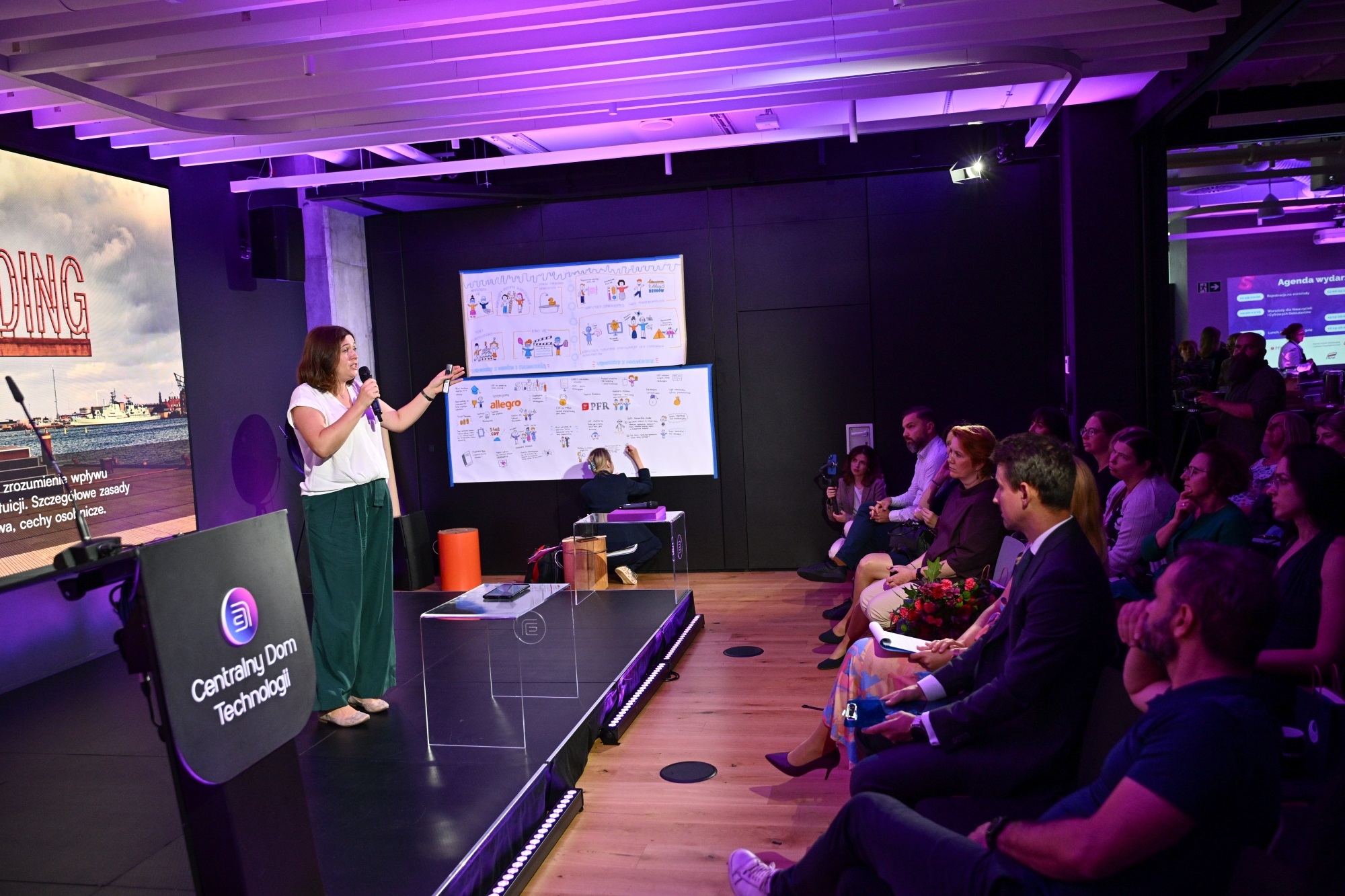 „Od 2019 r. naszym największym projektem jest Centralny Dom Technologii, który powstał, by stworzyć przestrzeń i miejsce, gdzie innowacje spotykają się z biznesem właśnie po to, by wspierać nowoczesną edukację, w której zdobywamy nie tylko kompetencje cyfrowe, ale też uczymy się krytycznego spojrzenia na świat, a także przedsiębiorczości. Jesteśmy kreatywni i staramy się tworzyć innowacje” - powiedziała Magdalena Grzankowska, prezes Fundacji PFR.