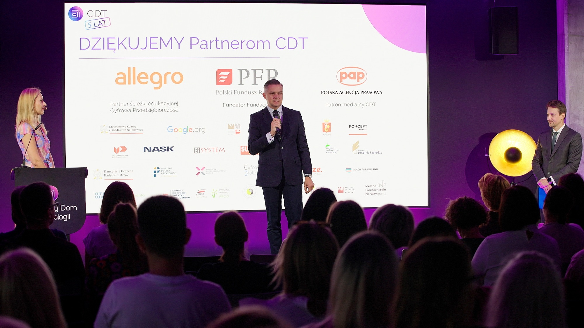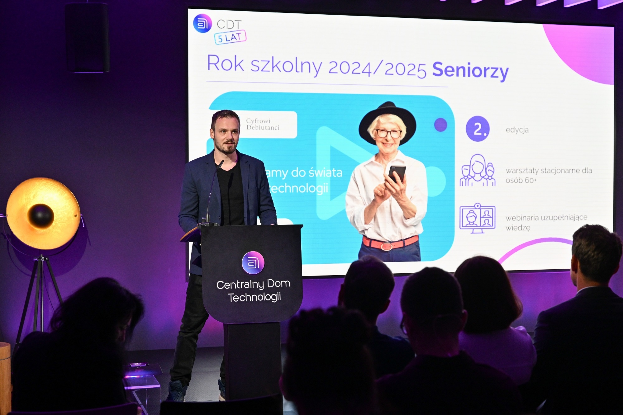 Gala z okazji 5. rocznicy utworzenia Centralnego Domu Technologii, którą poprowadziła Magdalena Grzankowska, prezes Fundacji Polskiego Funduszu Rozwoju, zgromadziła 12 września 2024 r. w CDT przy ul. Kruczej 50 w Warszawie nauczycieli, przedstawicieli oświaty, uczestników zajęć, partnerów CDT i lokalną społeczność.