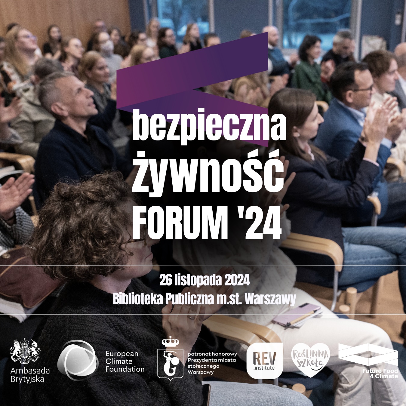 26 listopada 2024 w godzinach 10:30-15:30, w Bibliotece Publicznej m.st. Warszawy, już po raz trzeci odbędzie się Forum Bezpiecznej Żywności - wydarzenie organizowane przez Green REV Institute oraz koalicję Future Food 4 Climate. Wydarzenie jest wspierane przez Ambasadę Zjednoczonego Królestwa Wielkiej Brytanii i Irlandii Północnej oraz European Climate Foundation. III Forum Bezpiecznej Żywności zostało objęte patronatem honorowym Prezydenta Miasta Stołecznego Warszawy.