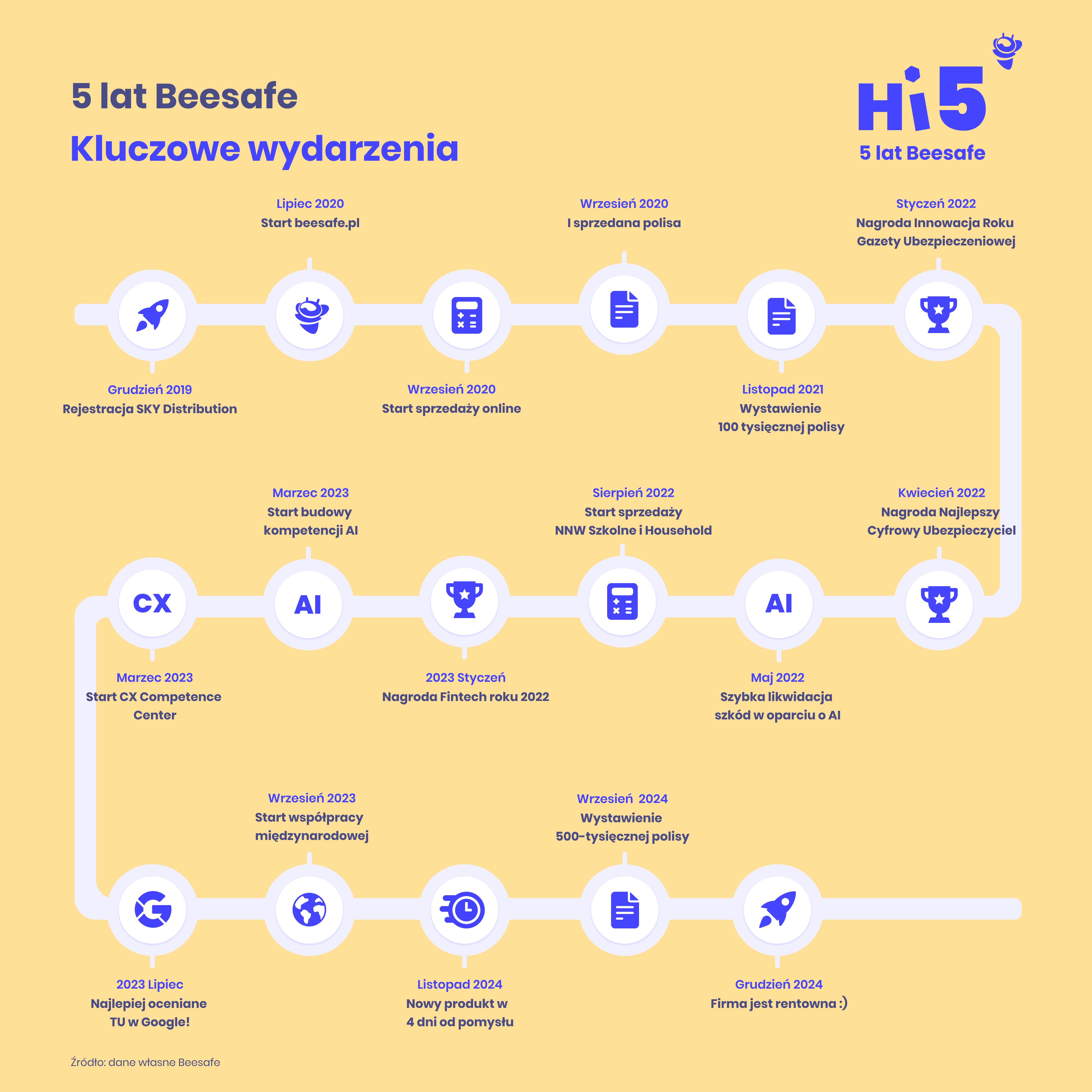 Beesafe powstał jako start-up ubezpieczeniowy z inicjatywy Vienna Insurance Group (VIG). Od początku stawiał na zwinność technologiczną i jak najlepsze doświadczenie klienta poprzez maksymalne upraszczanie procesów. Owocem tego był pierwszy w Polsce e-kalkulator, który po podaniu jedynie numeru rejestracyjnego auta i daty urodzenia jego właściciela, w kilka sekund wyliczał wysokość polisy OC/AC, oferując najlepsze na rynku doświadczenie klienta - 4.7 w ocenach klientów w Google to najlepszy wynik na rynku ubezpieczeniowym.
