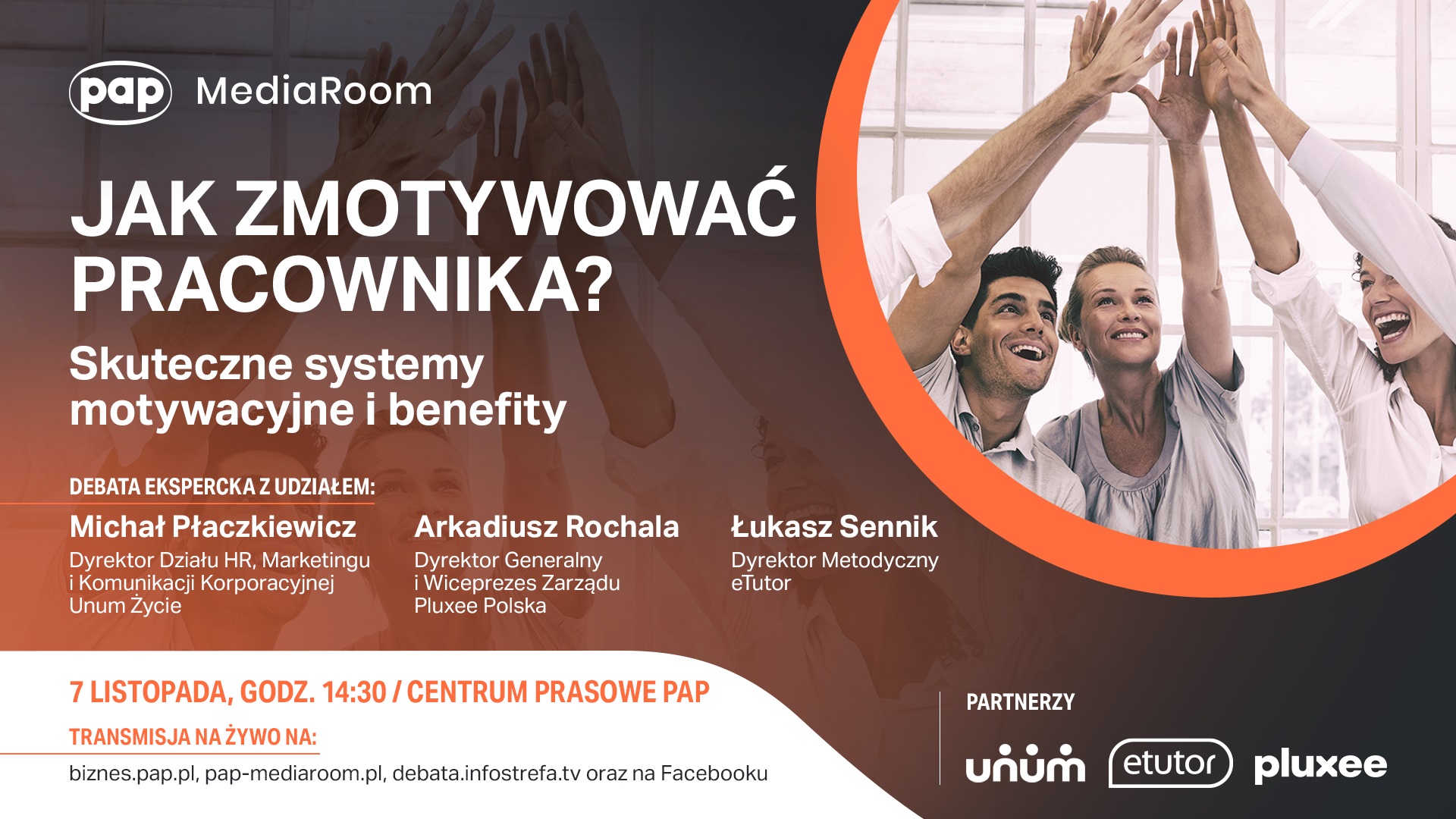 7 listopada o godz. 14:30 w Centrum Prasowym PAP odbędzie się debata poświęcona systemom motywacyjnym. W gronie ekspertów przyjrzymy się nowym programom wspierającym budowanie przyjaznego środowiska pracy oraz sprawdzimy, jakie działania pozytywnie wpływają na efektywność i zwiększają potencjał zespołów na każdym szczeblu organizacji.