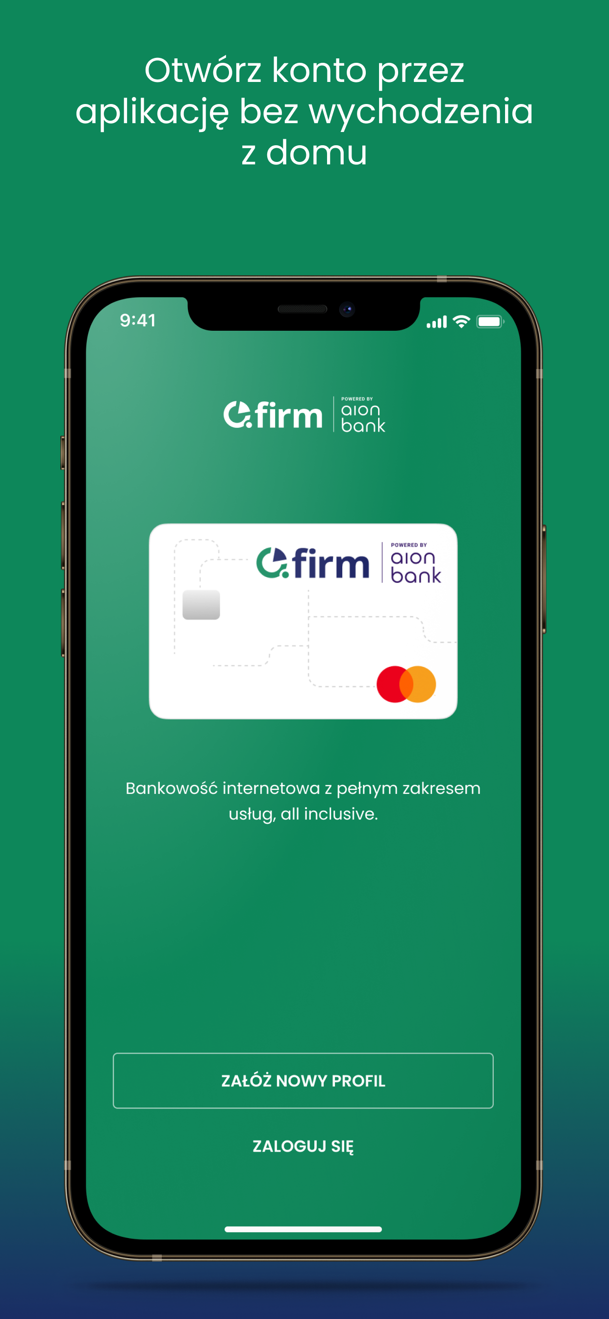 Przez .firm powered by Aion Bank należy rozumieć współpracę Firm Financial Sp. z o.o., z siedzibą w Zielonej Górze, pod adresem ul. Bohaterów Westerplatte 44/10, 65-078 Zielona Góra, wpisaną do rejestru przedsiębiorców prowadzonego przez Sąd Rejonowy w Zielonej Górze, VIII Wydział Gospodarczy Krajowego Rejestru Sądowego, pod numerem KRS: 0000964240, REGON: 52176737900000, NIP: 9731084720 („Firm”) z AION BANK SA / NV, instytucją kredytową utworzoną jako spółka akcyjna („société anonyme” / „naamloze vennootschap”) zgodnie z prawem belgijskim, z siedzibą w Brukseli (Belgia), pod adresem: Sq. Victoria Régina 1, 3rd Floor, 11210 Saint-Josse-ten-Noode , Belgia, wpisaną do belgijskiego rejestru działalności gospodarczej – Crossroads Bank for Enterprises pod numerem 403.199.306, posiadającą licencję Narodowego Banku Belgii i Europejskiego Banku Centralnego, upoważniającą do prowadzenia działalności jako instytucja kredytowa, zgodnie z belgijskim prawem bankowym z dnia 25 kwietnia 2014 r. („Bank”); w Polsce AION BANK SA / NV działa poprzez oddział Aion Bank S.A. Spółka Akcyjna Oddział w Polsce z siedzibą w Warszawie, pod adresem: ul. Dobra 40, 00-344 Warszawa, wpisany do rejestru przedsiębiorców prowadzonego przez Sąd Rejonowy dla m. st. Warszawy w Warszawie, XIII Wydział Gospodarczy Krajowego Rejestru Sądowego, pod numerem KRS: 0000807333, REGON: 384549659, NIP 1080023480 (“Oddział”), na podstawie której, za pośrednictwem Firm, są oferowane wybrane produkty i usługi Banku, w oparciu o model bankowości jako usługi (Banking-as-a-Service).