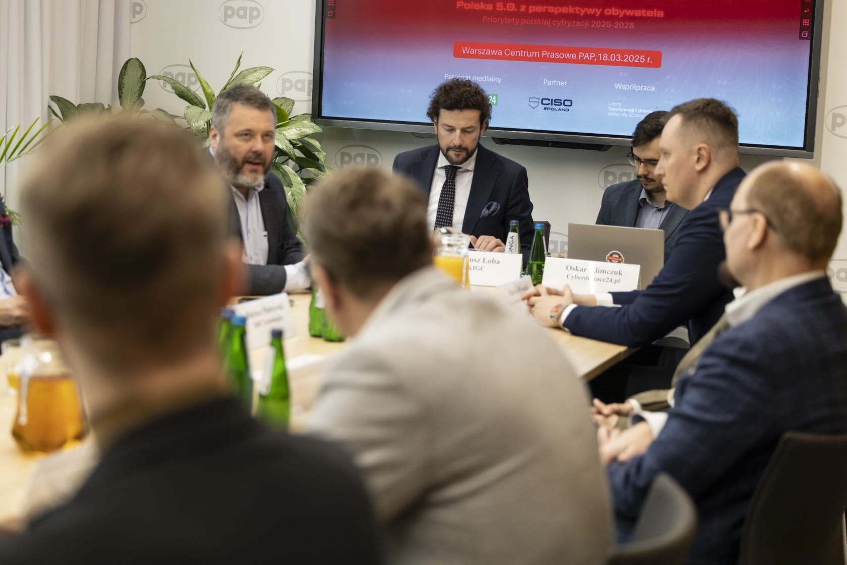 Spotkanie eksperckie w Centrum Prasowym PAP zostało zorganizowane w ramach cyklu „Polska 5.0 z perspektywy obywatela - priorytety polskiej cyfryzacji 2025-2028”. Rozmowa, do której zaproszono przedstawicieli administracji rządowej, instytucji naukowych i biznesu, odbyła się pod patronatem KIGC: izby gospodarczej zrzeszającej firmy oraz przedsiębiorców z rynku gospodarki cyfrowej we współpracy z portalem CyberDefence24, CISO Poland i programem „Liderzy Transformacji Cyfrowej Sektora Publicznego”.