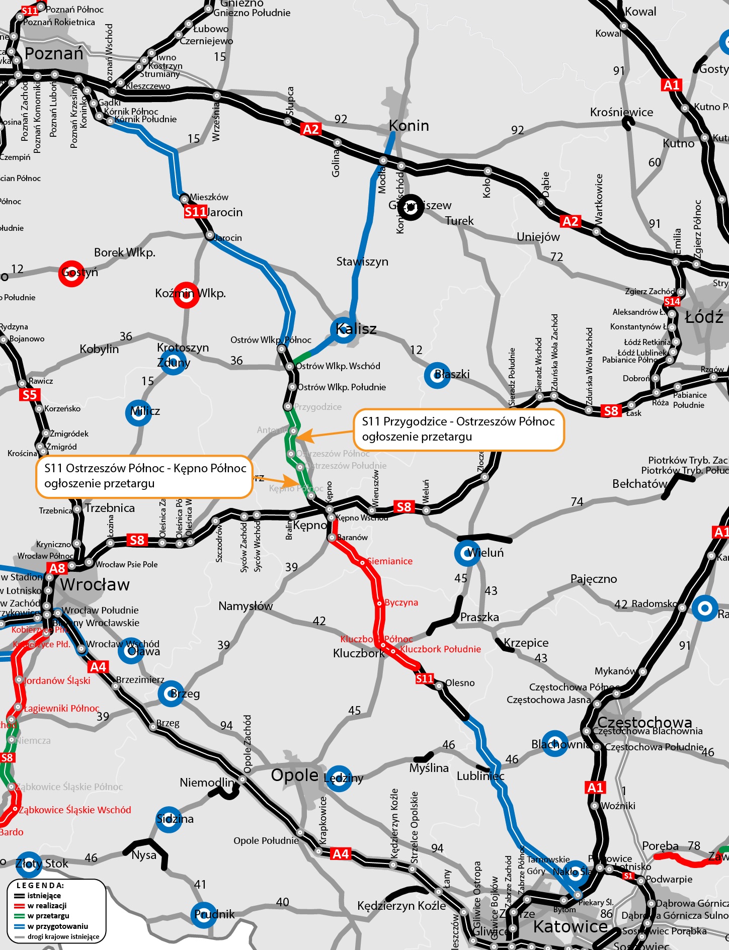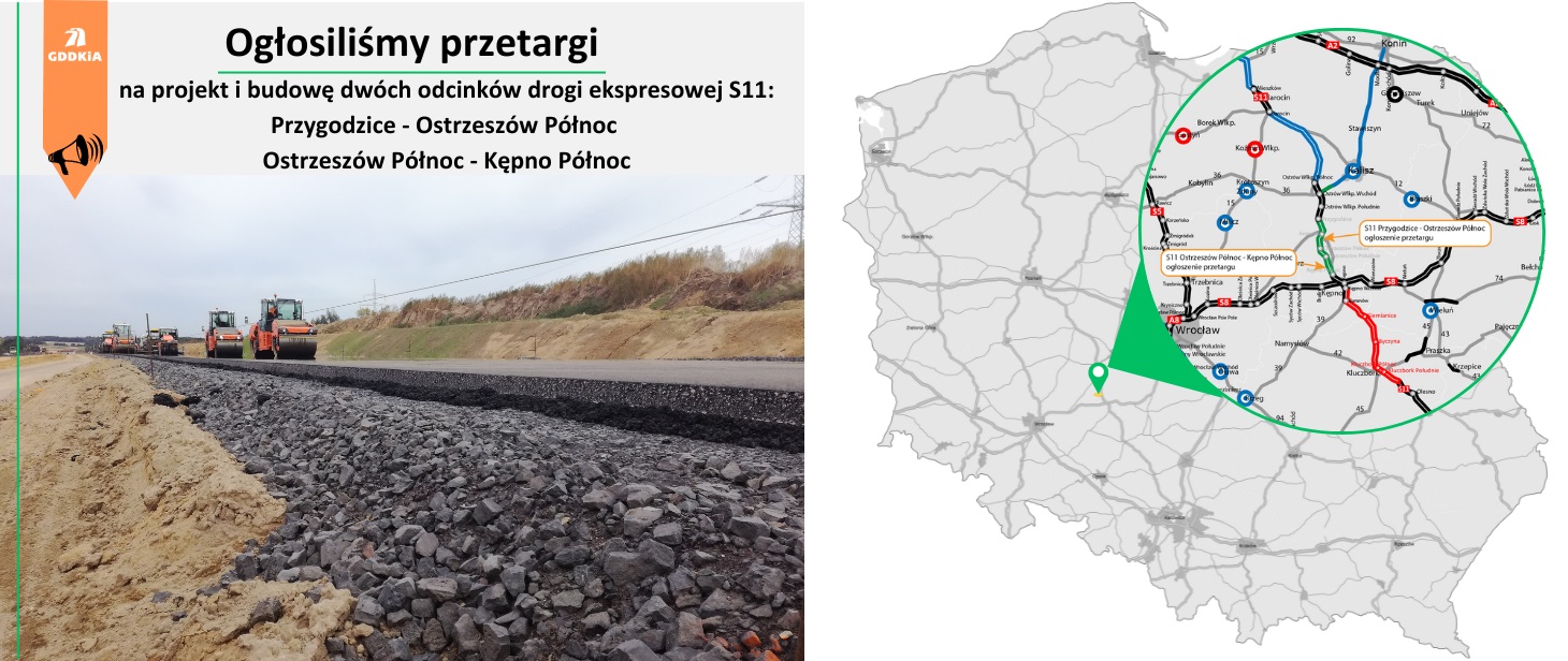 Do publikacji w Dzienniku Urzędowym UE GDDKiA wysłała ogłoszenia o przetargach na zaprojektowanie i budowę około 30 kilometrów drogi ekspresowej S11 Ostrów Wielkopolski – Kępno. Składają się na to dwa odcinki, które zrealizowane zostały w latach 2025-2029 w ramach Rządowego Programu Budowy Dróg Krajowych do 2030 r.