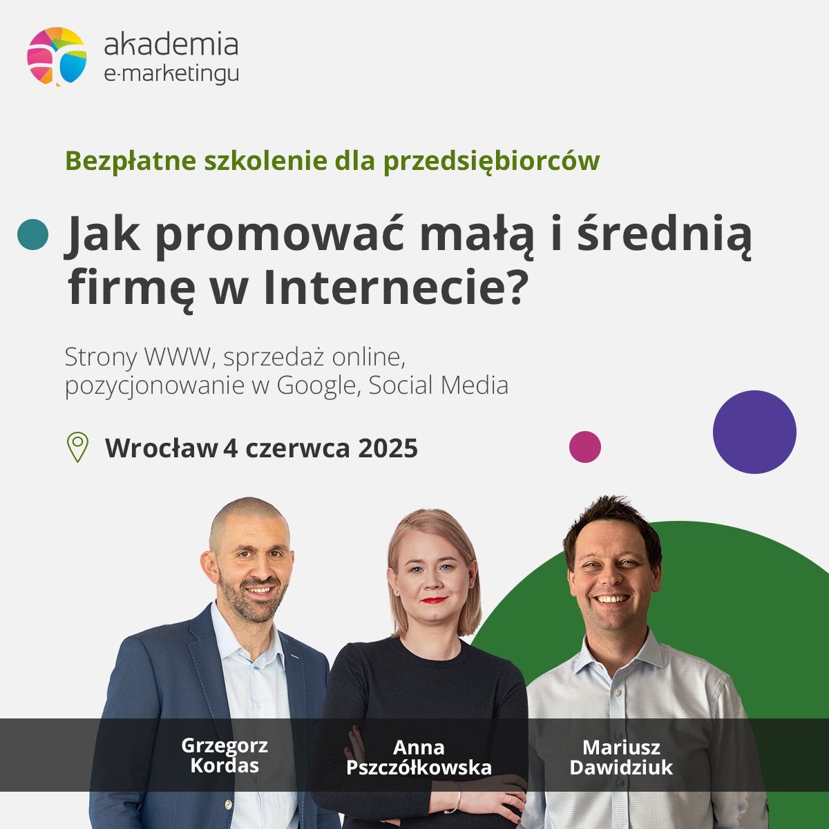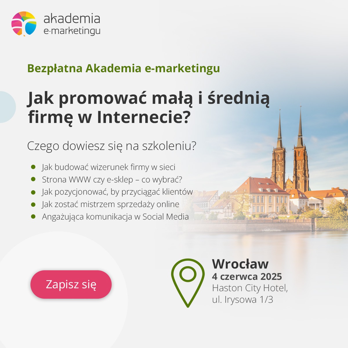 Już 4 czerwca br. we wrocławskim Haston City Hotel odbędzie się kolejne spotkanie Akademii e-marketingu. To już 13. edycja cyklu darmowych szkoleń adresowanych do małych i średnich przedsiębiorców, którzy pragną odnieść sukces w biznesie internetowym. W trakcie spotkań z doświadczonymi ekspertami i praktykami uczestnicy będą mogli zdobyć lub poszerzyć swoją wiedzę np. z zakresu tworzenia strony www, prowadzenia działań SEO czy wykorzystania narzędzi promocyjnych czy sztucznej inteligencji.