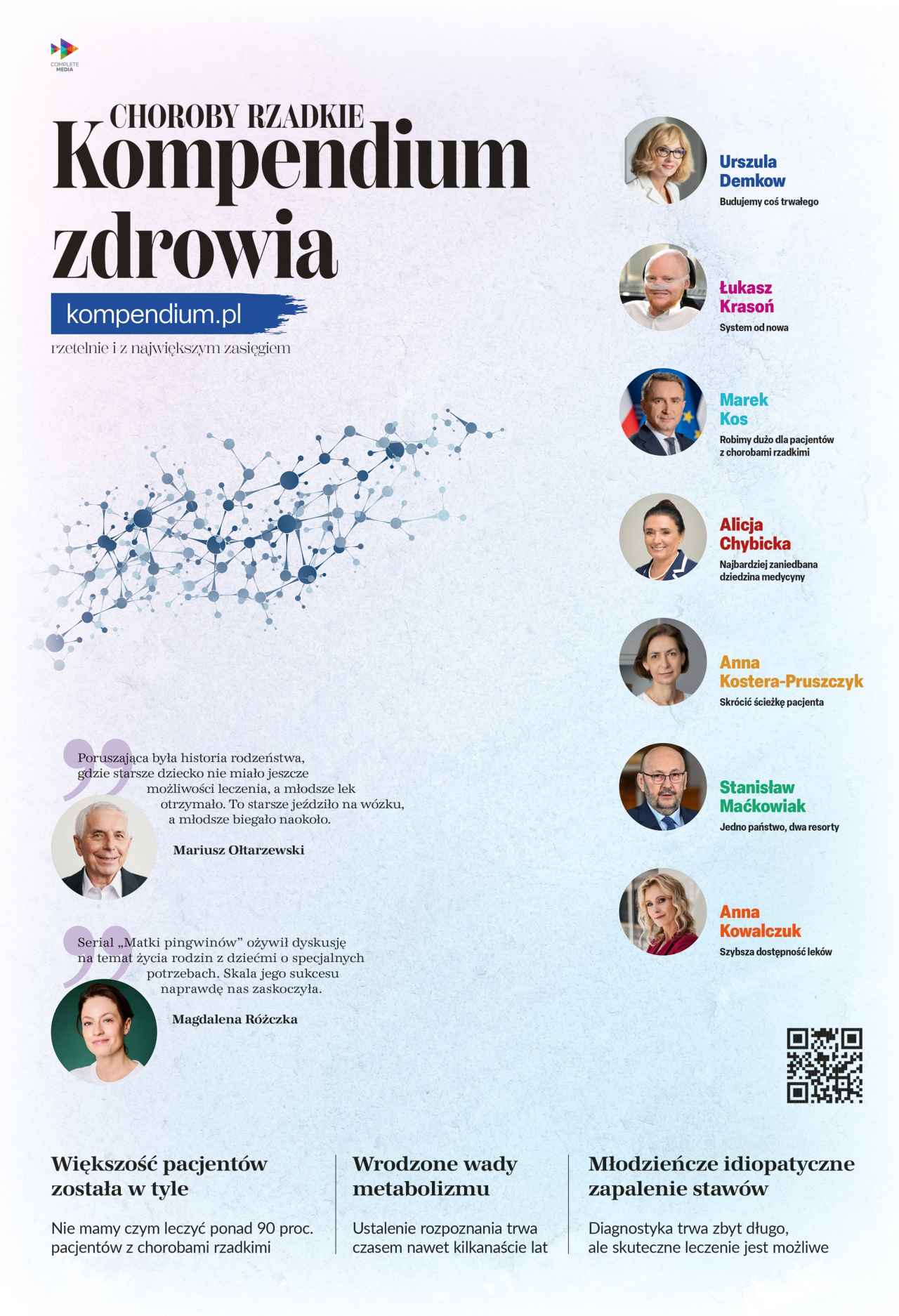 W „Kompendium zdrowia” głos został oddany wielu najwyższej klasy specjalistom. Podzielili się z czytelnikami swoim doświadczeniem, swoimi sukcesami i nadziejami, a także zwrócili uwagę na najważniejsze potrzeby pacjentów i ich rodzin w tym względzie.