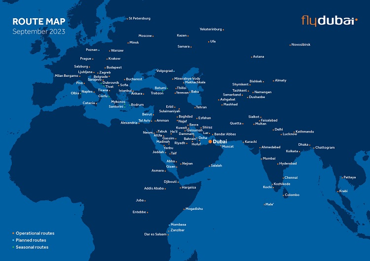 flydubai stworzył wciąż rozwijającą się siatkę ponad 115 połączeń do 53 krajów w Afryce, Azji Środkowej, na Kaukazie, w Europie Środkowej i Południowo-Wschodniej, w krajach Rady Współpracy Zatoki Perskiej (GCC), na Środkowym Wschodzie oraz subkontynencie indyjskim. Przewoźnik z Dubaju zarządza nową i sprawną flotą składającą się z 79 samolotów Boeing 737, zapewniając pasażerom wygodną i niezawodną podróż. Pasażerowie klasy biznes mogą cieszyć się większą przestrzenią i komfortem, dzięki rozkładanym fotelom, również do pozycji leżącej, a także menu inspirowanym międzynarodowymi trendami oraz szerokim wyborem wciągającej rozrywki na pokładzie.