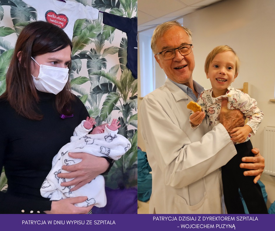 Po przeniesieniu do inkubatora i sali intensywnej terapii jej rodzice codziennie mogli ją kangurować. Dziś Patrycja, ważąca już ponad 9 kilogramów zdrowa trzylatka, dokazuje na równi ze swoim bratem bliźniakiem i cieszy się pełnią zdrowia.