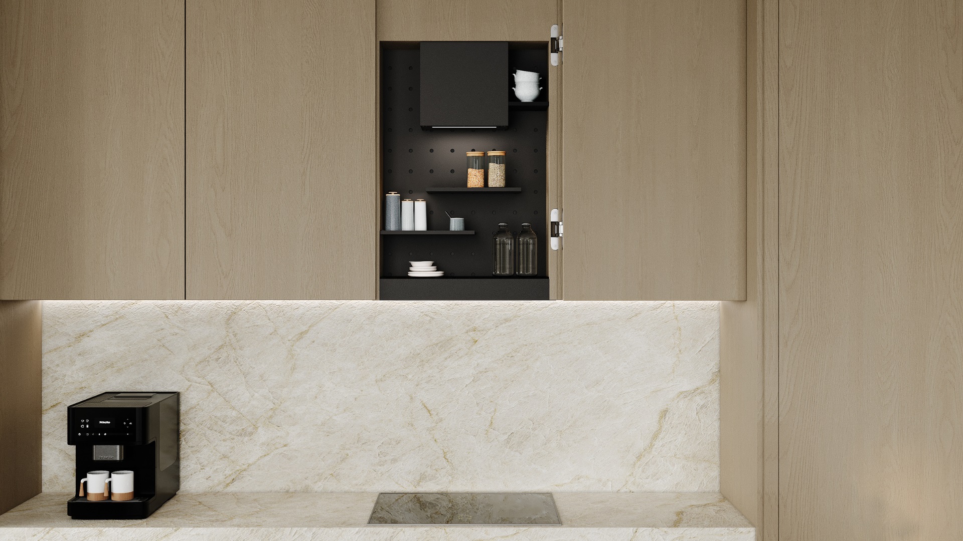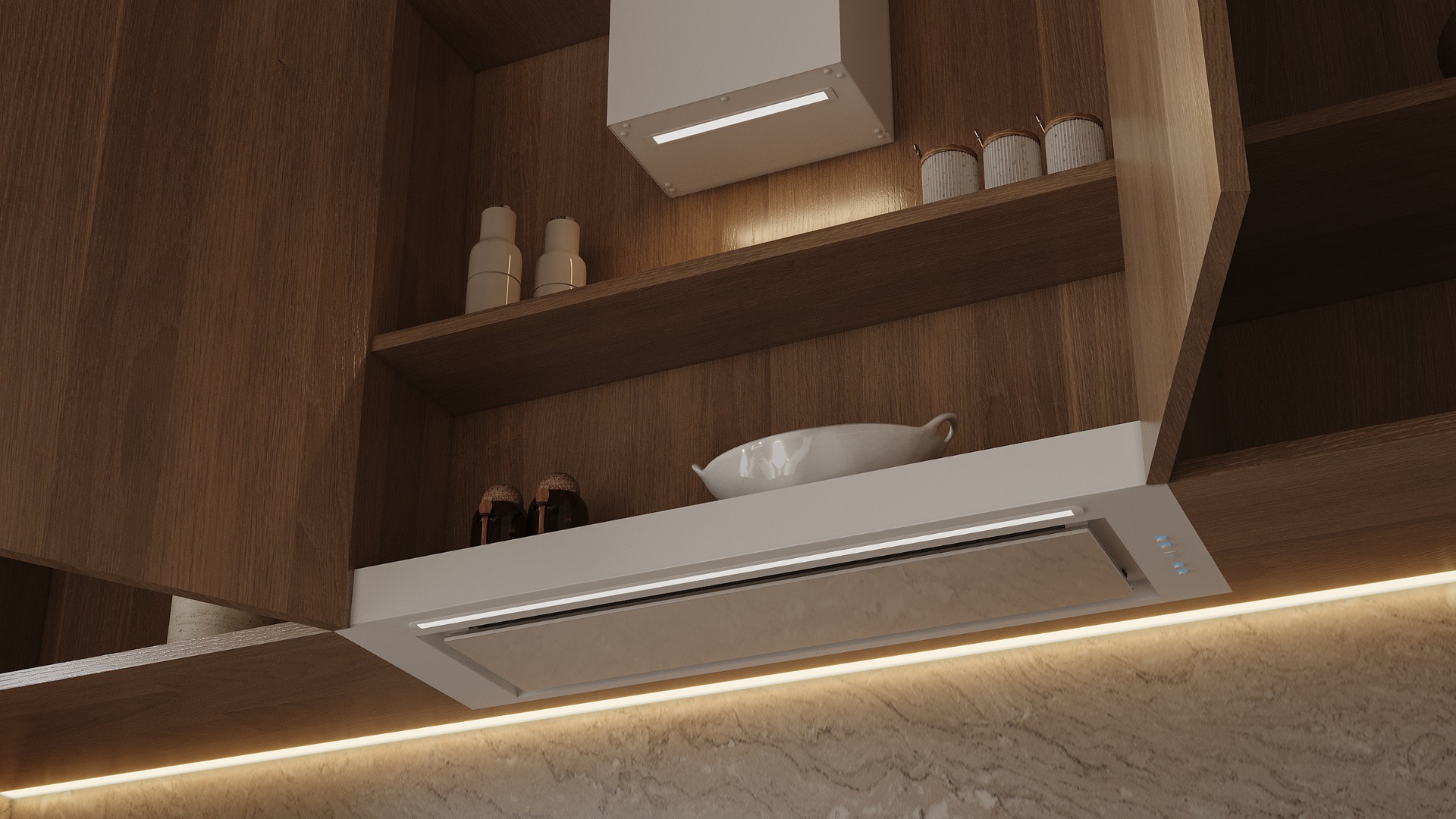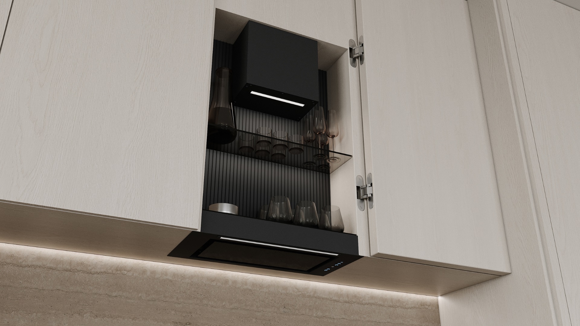 Micra Space to wyjątkowa elastyczność w personalizacji. Okapy podszafkowe Micra Space można zabudować według własnych potrzeb i upodobań. Przestrzeń w szafce można samodzielnie zaaranżować, co pozwala na kreatywne wykorzystanie cennego miejsca w szafce nad okapem. Koncept zagospodarowania szafki jest ograniczony jedynie wyobraźnią, co daje nieskończone możliwości aranżacji.